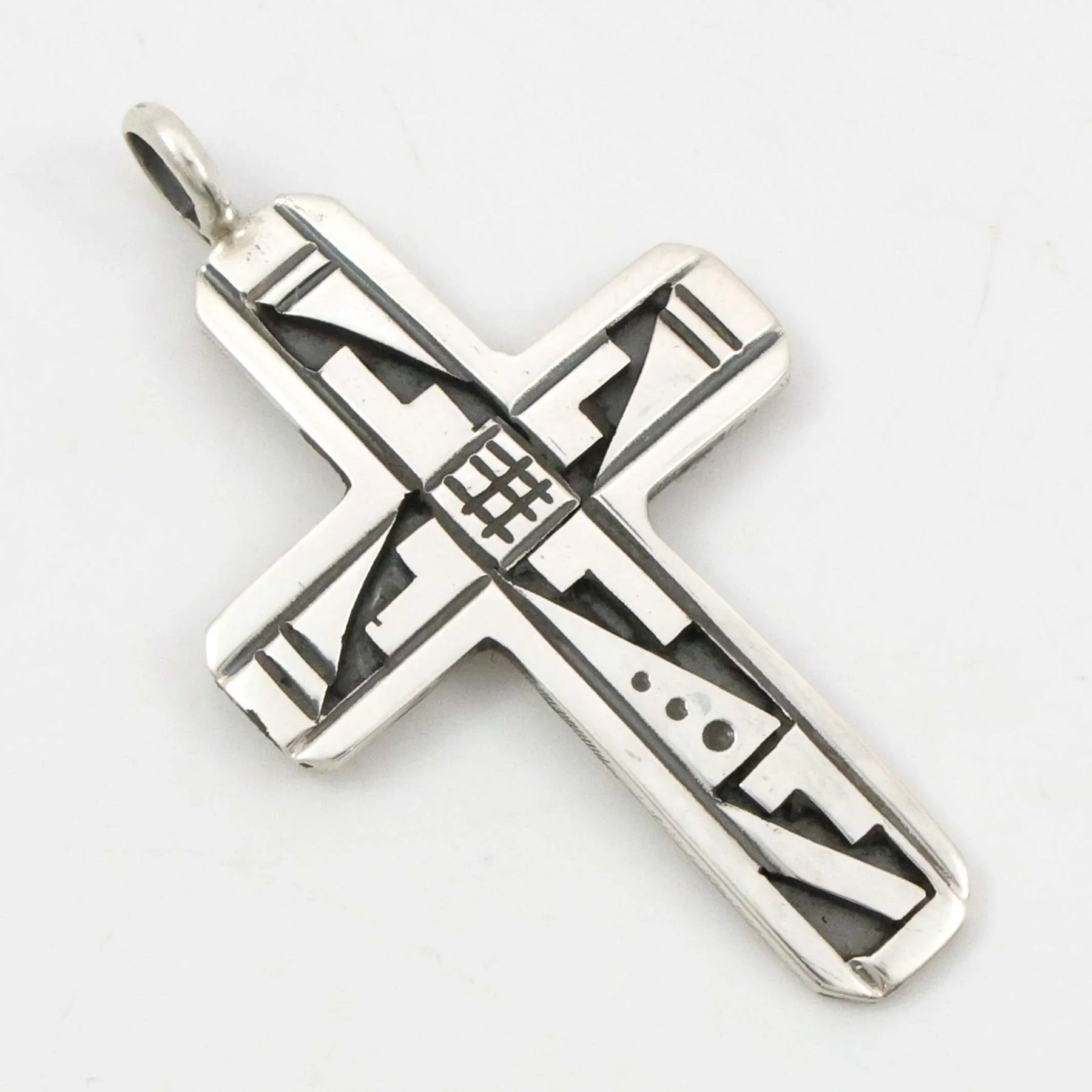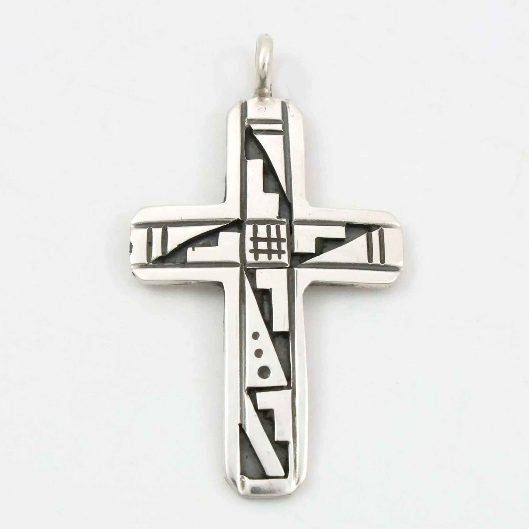 Sterling Silver Cross Pendant with Overlaid Designs.
