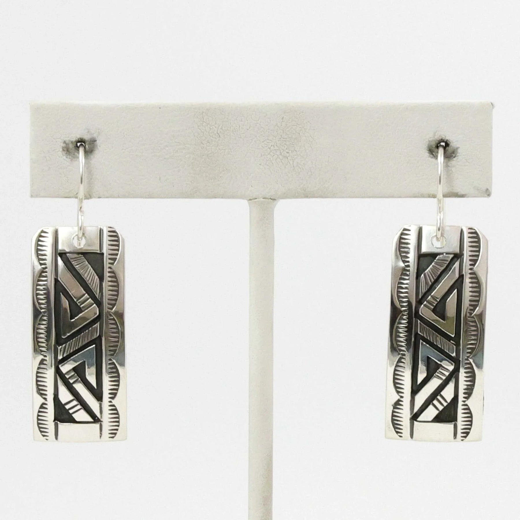 Sterling Silver French Hook Dangle Earrings with Navajo Overlaid and Hand-Stamped Designs.