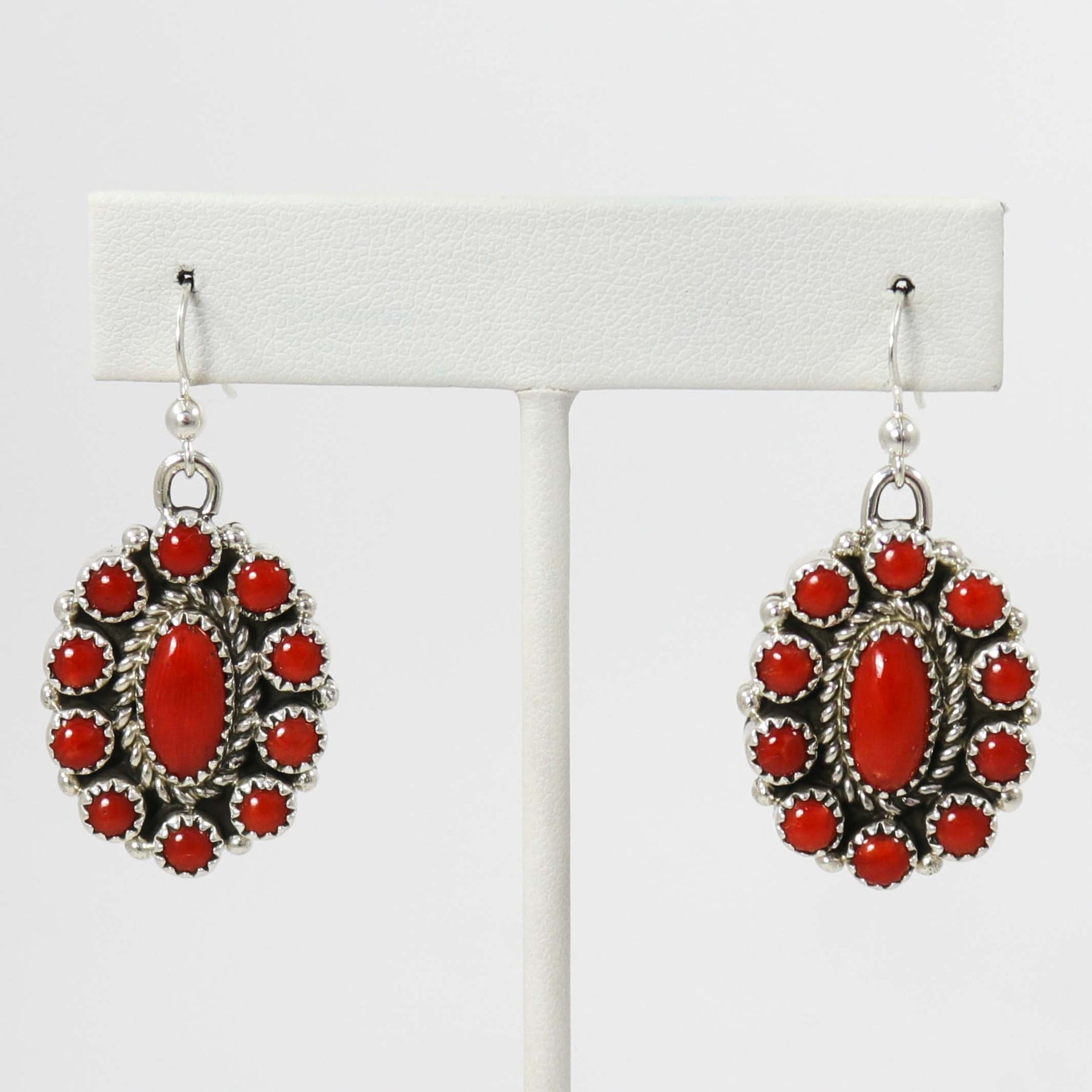 Sterling Silver French Hook Earrings set with Clusters of Mediterranean Coral.