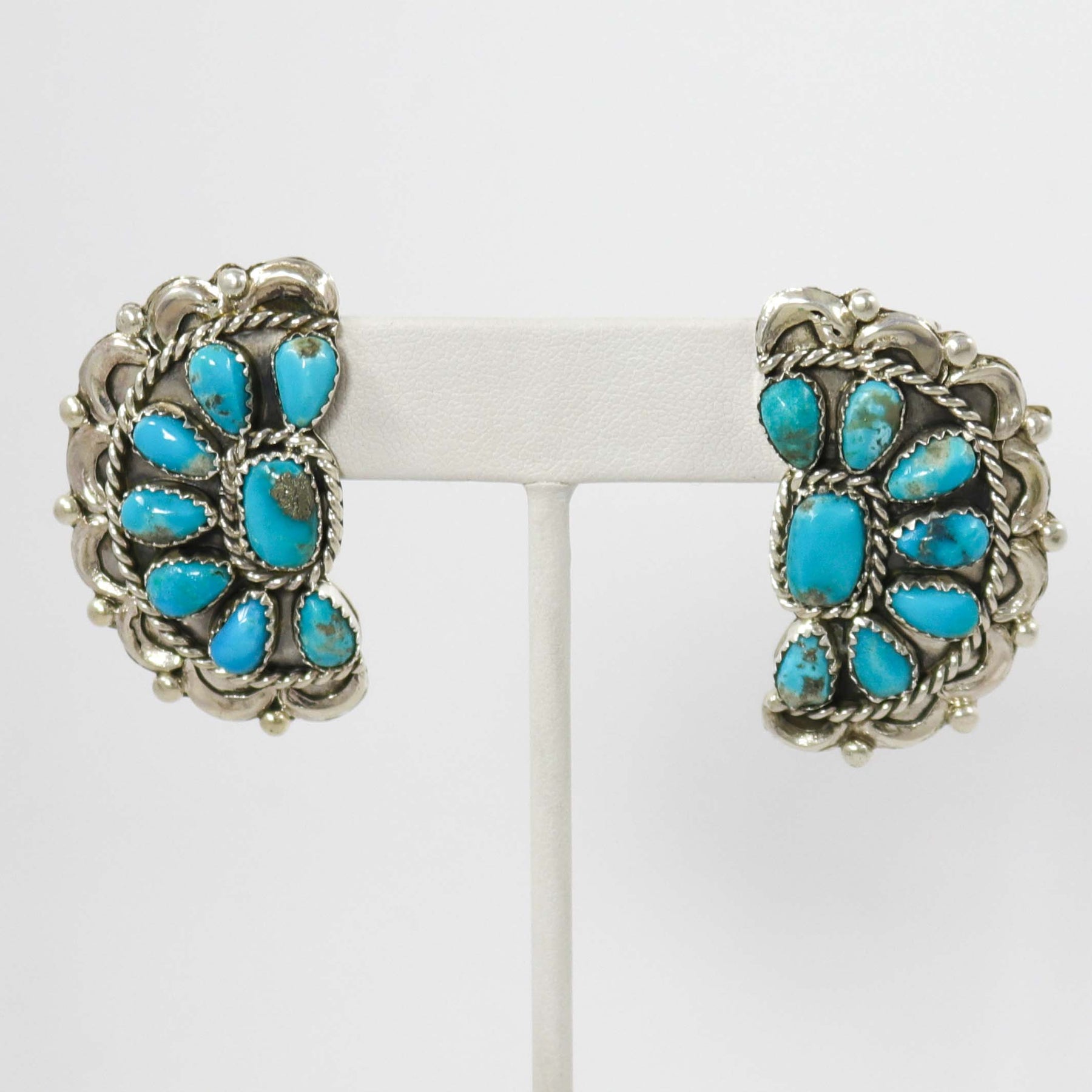 Kingman Turquoise Earrings by Fannie Begay - Garland's