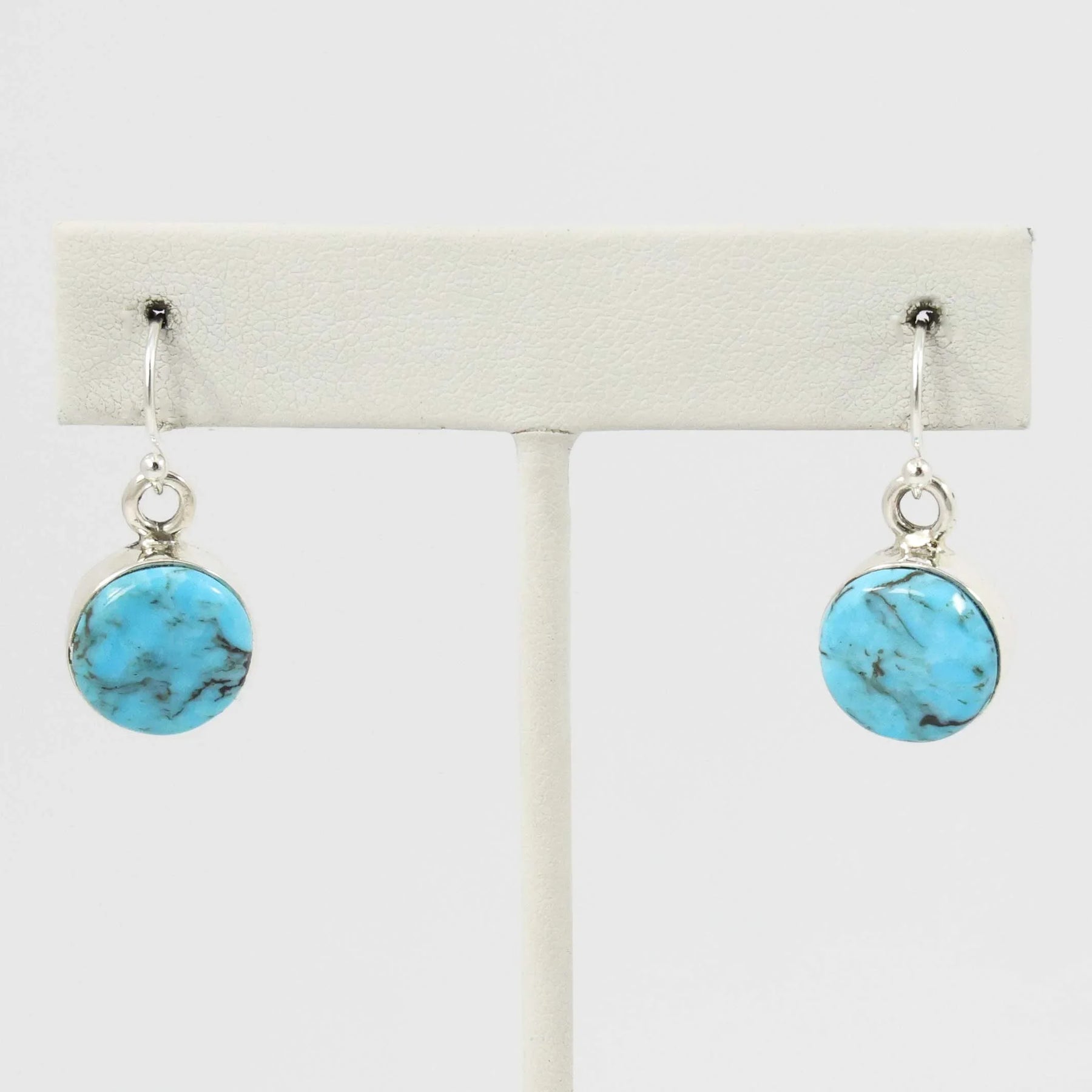 Sterling Silver French Hook Dangle Earrings set with Natural Kingman Turquoise from Arizona.
