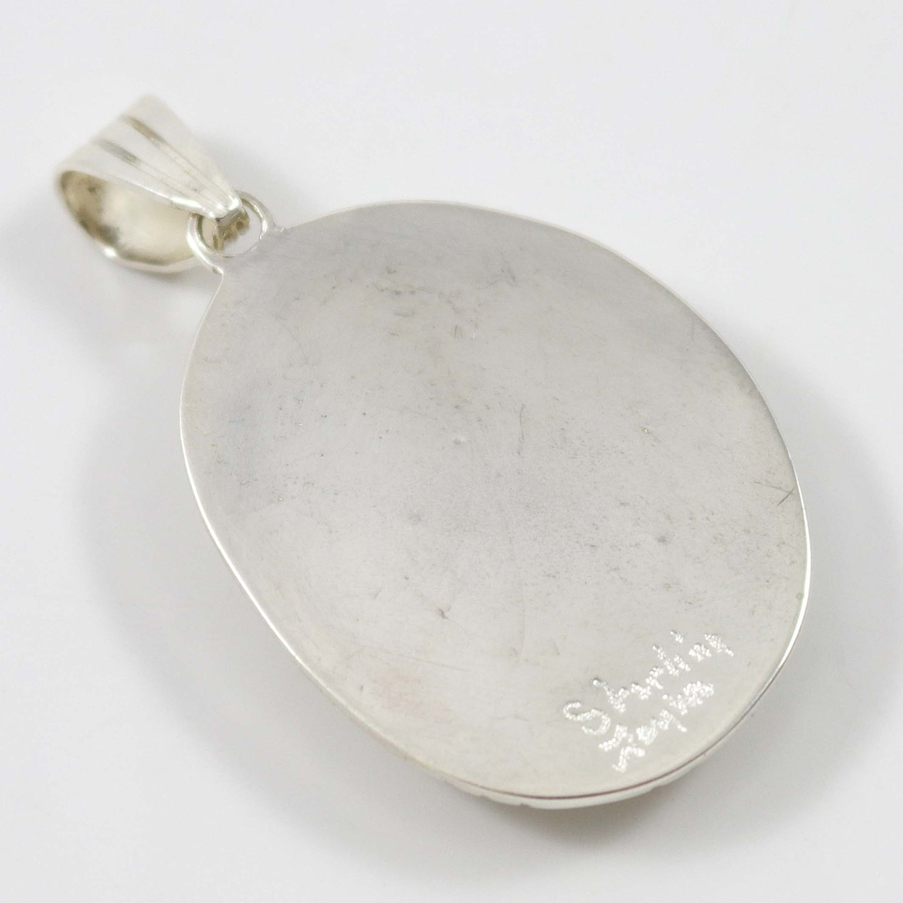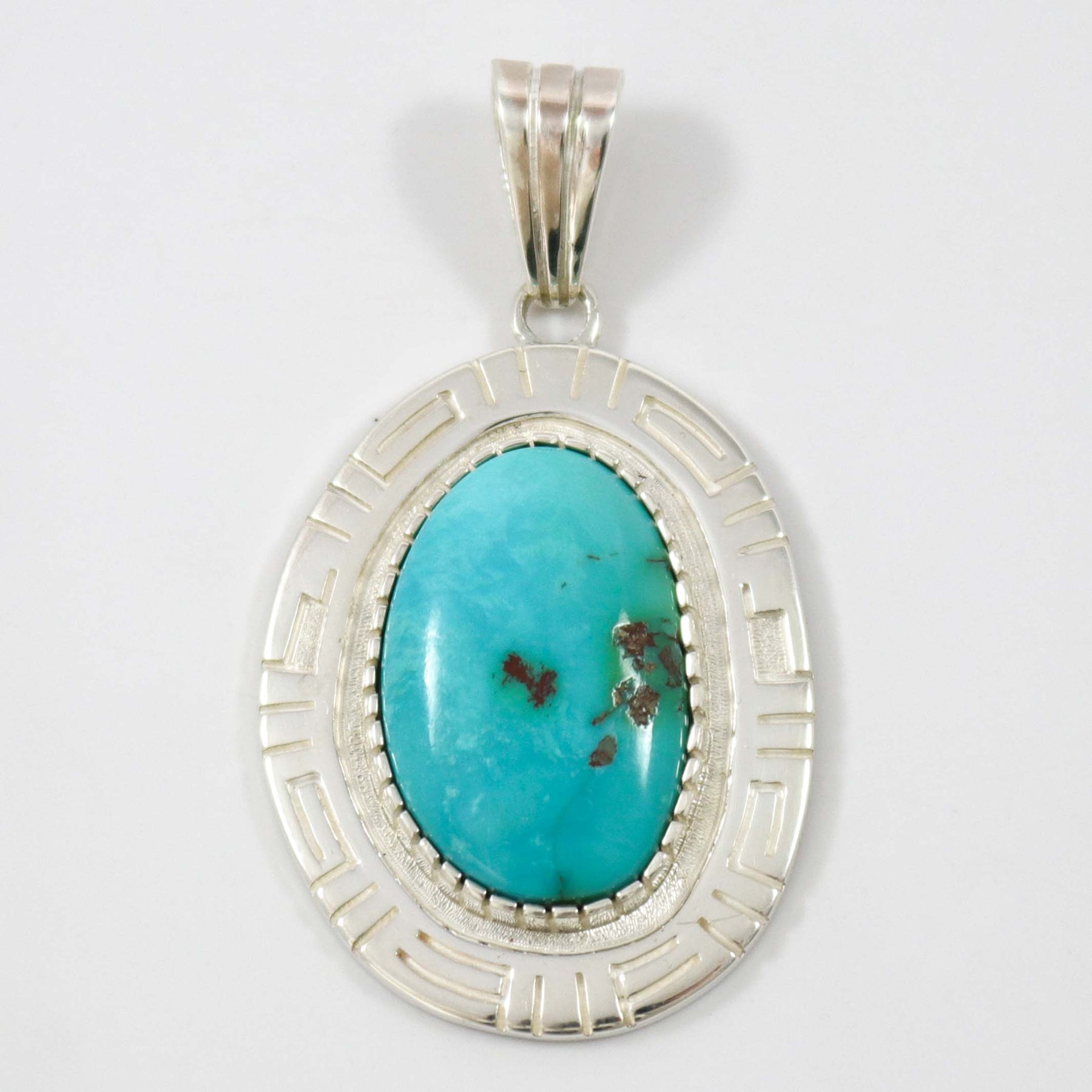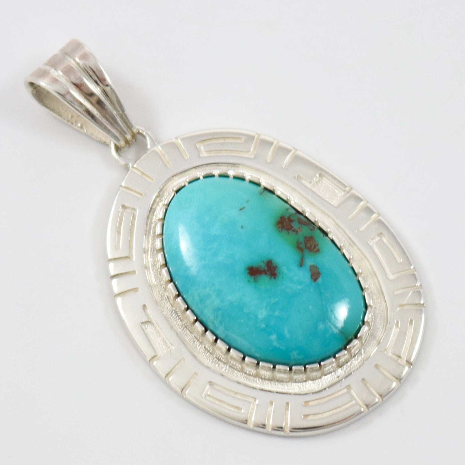 Sterling Silver Pendant with Overlaid Designs and set with Natural American Turquoise from the private collection of late Navajo artist Herbert Taylor, mine unknown.