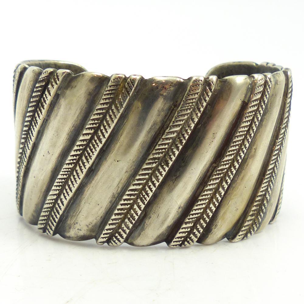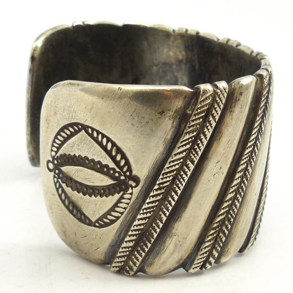 Wide Coin Silver Cuff with Hand Stamped and Filed Designs.