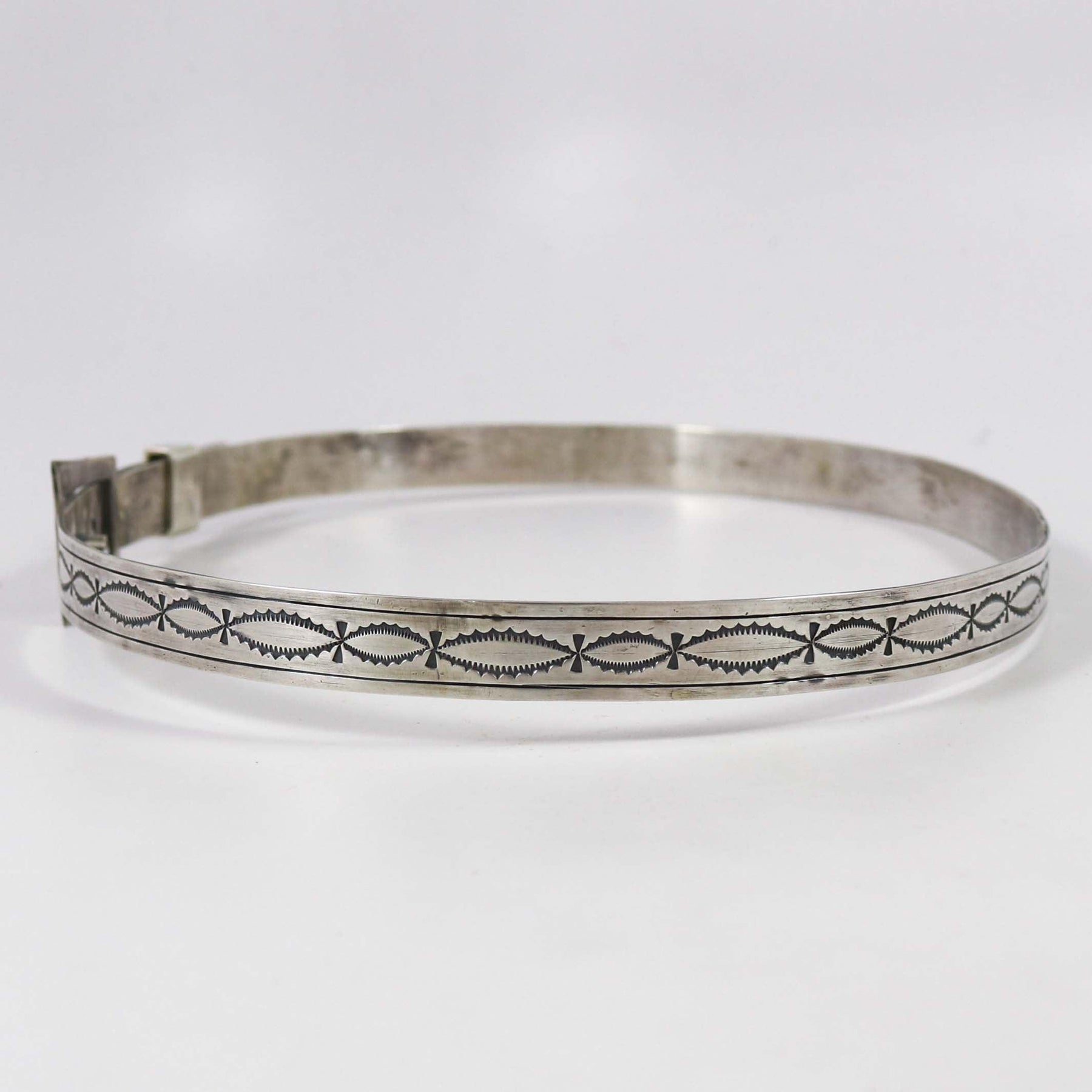 Sterling Silver Adjustable Hat Band with Hand-Stamped Designs.