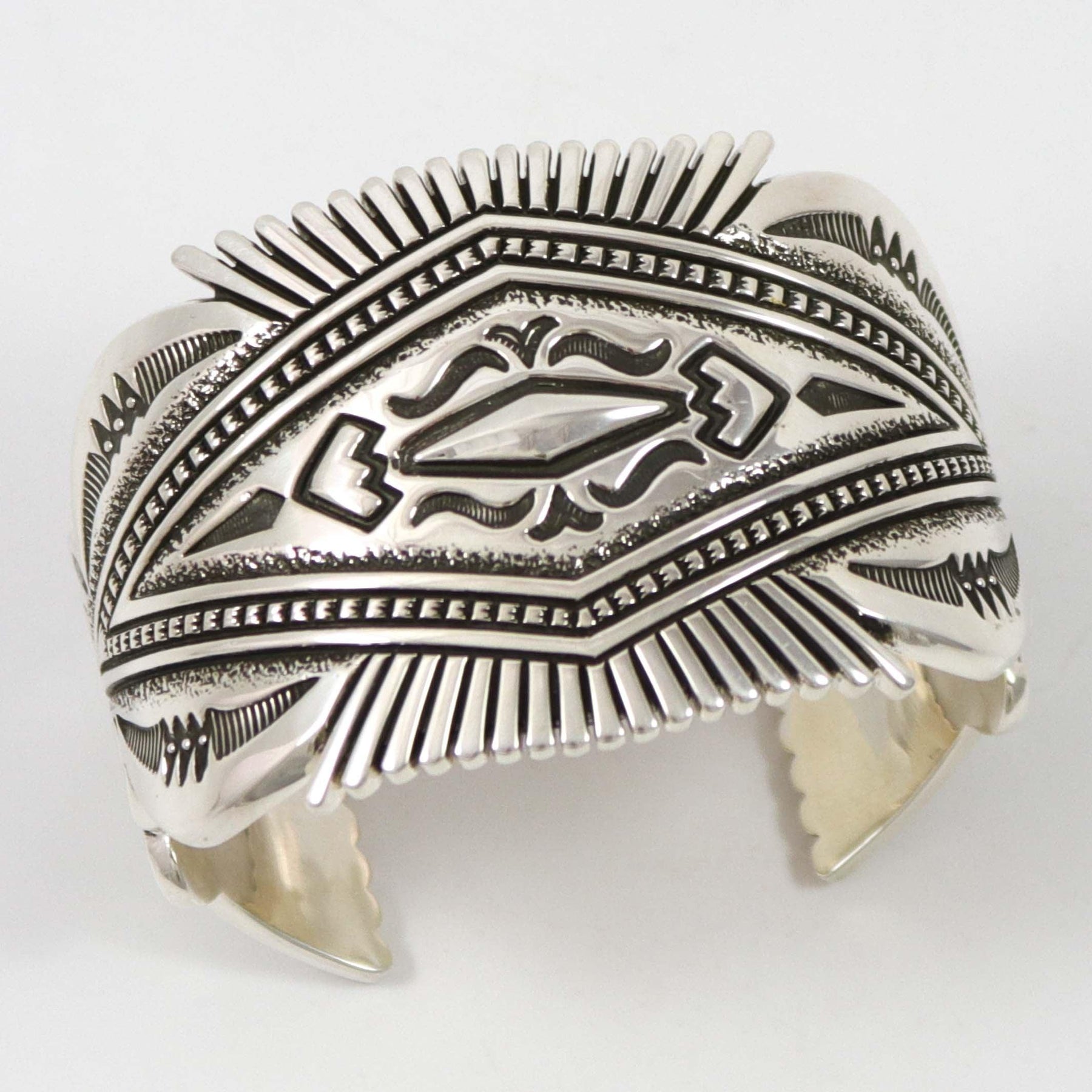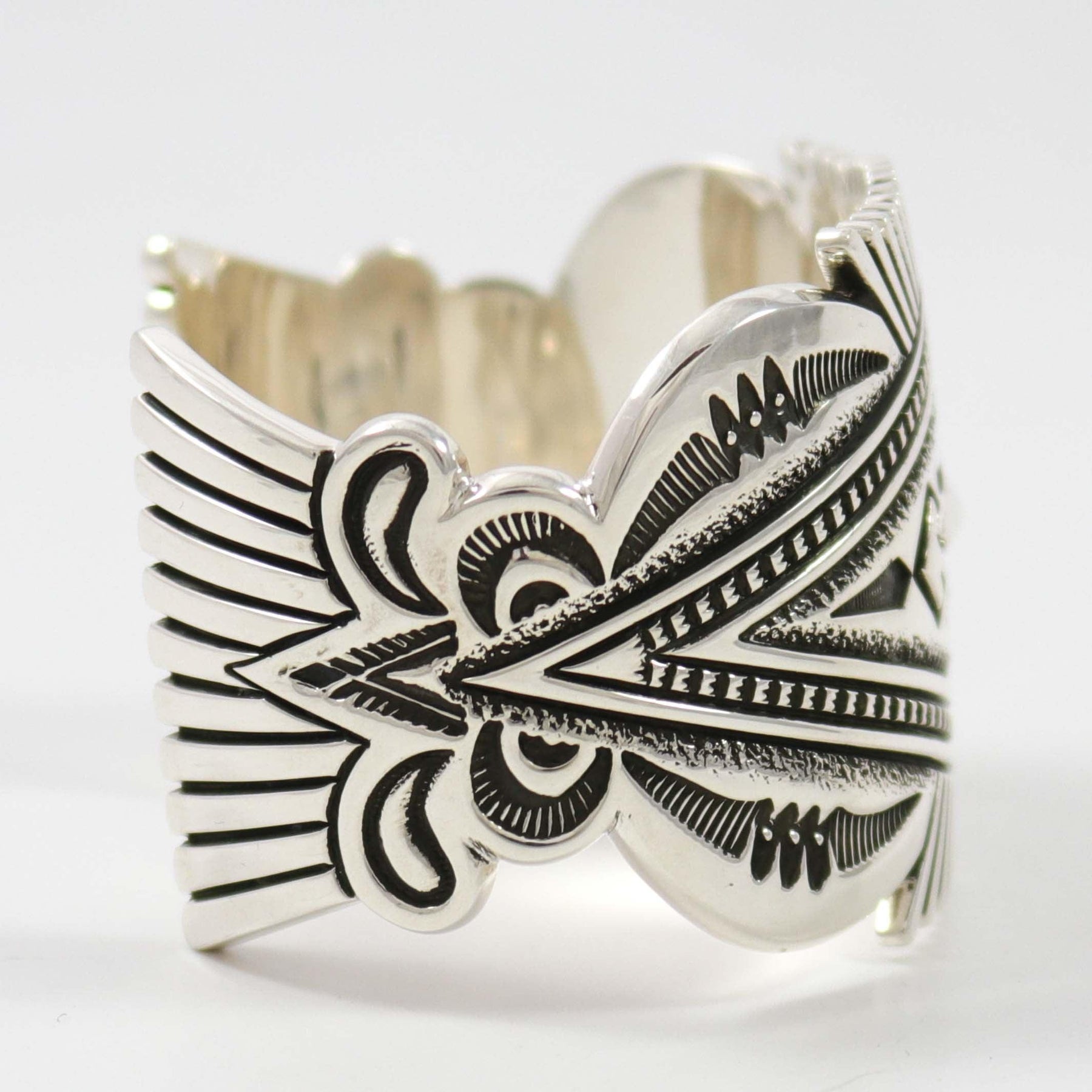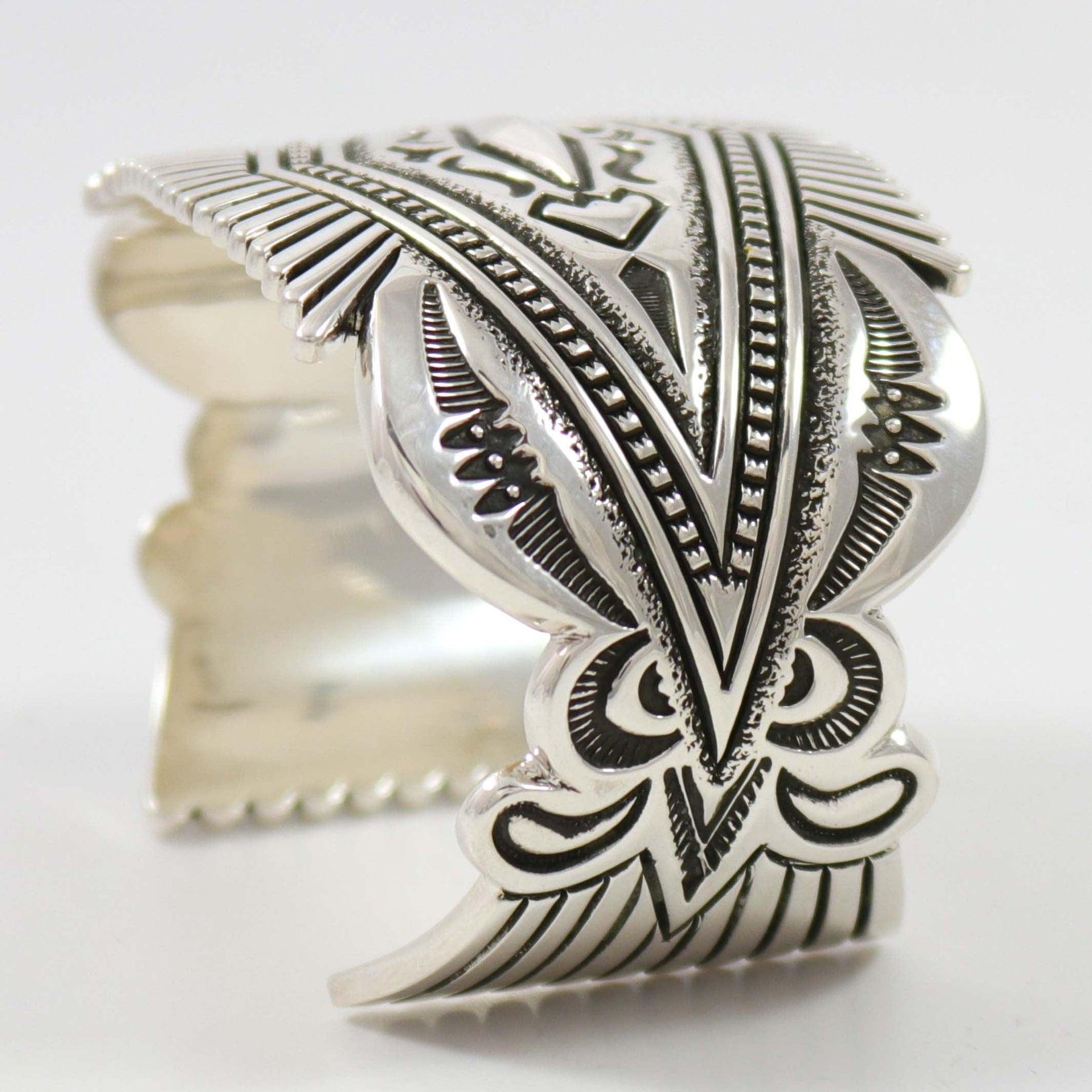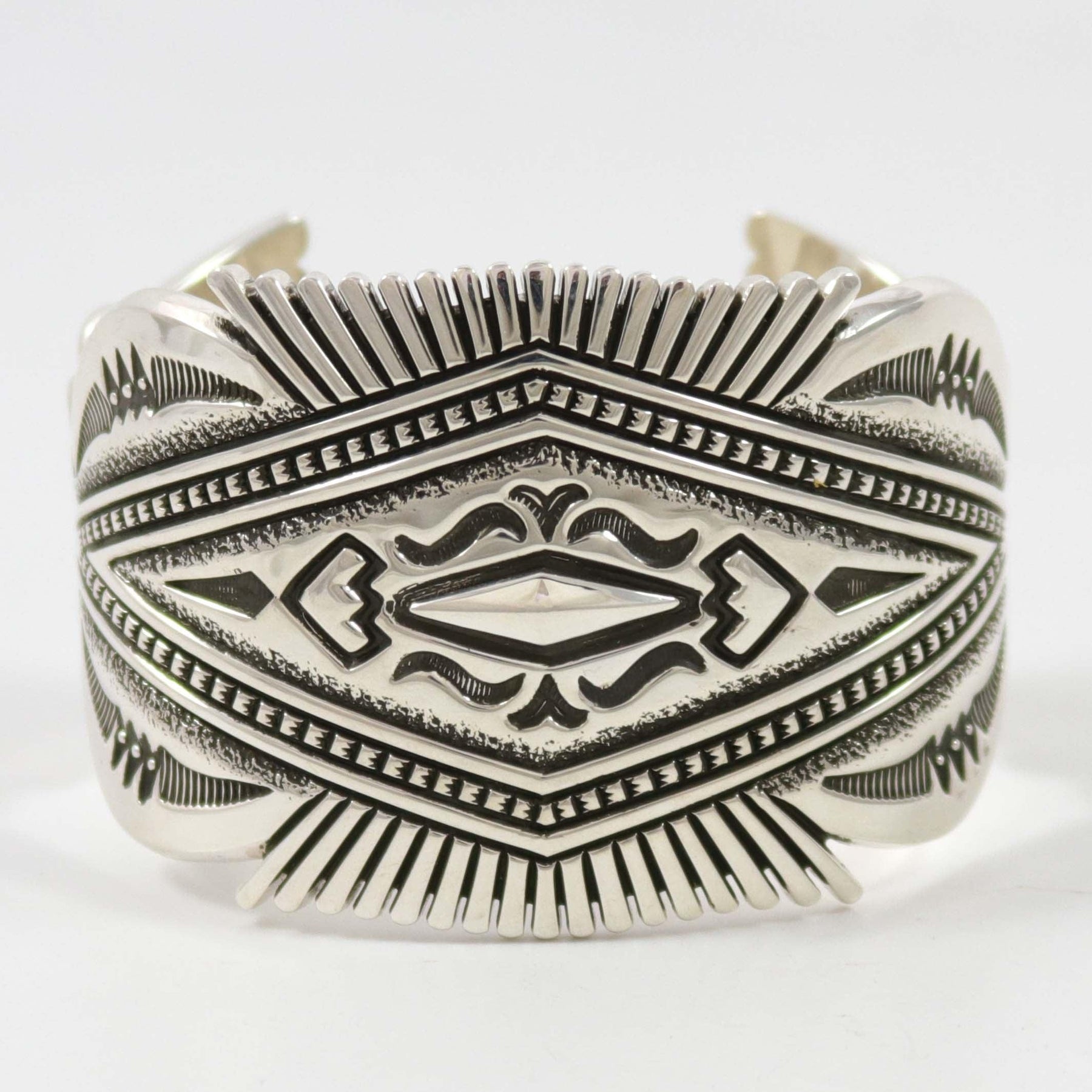 10 Gauge Sterling Silver Cuff Bracelet with Heavy Hand-Stamped and Hand-Filed Designs.
