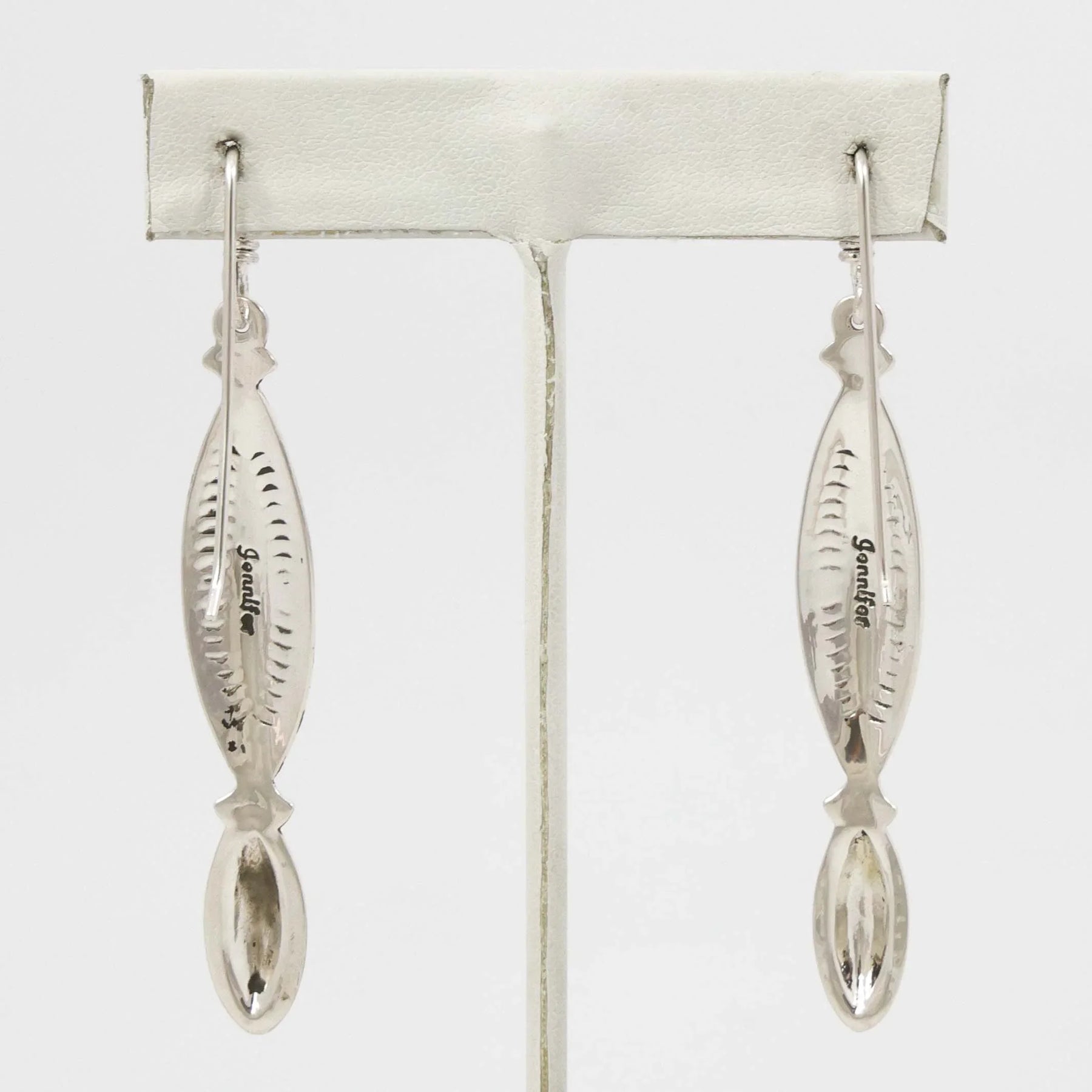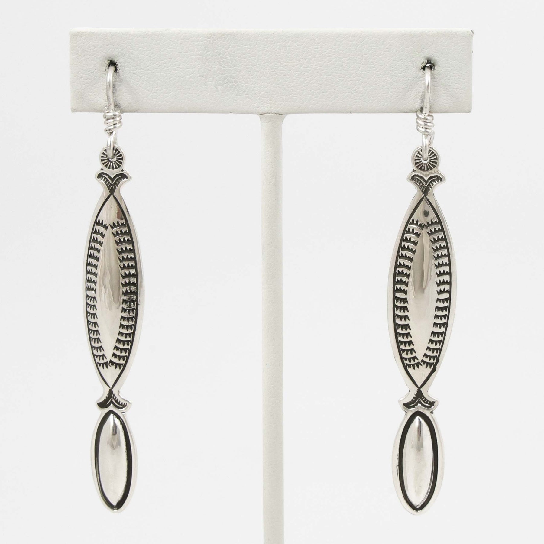 Sterling Silver French Hook Earrings with Hand Stamped Designs by Award-Winning Navajo Silversmith, Jennifer Curtis.