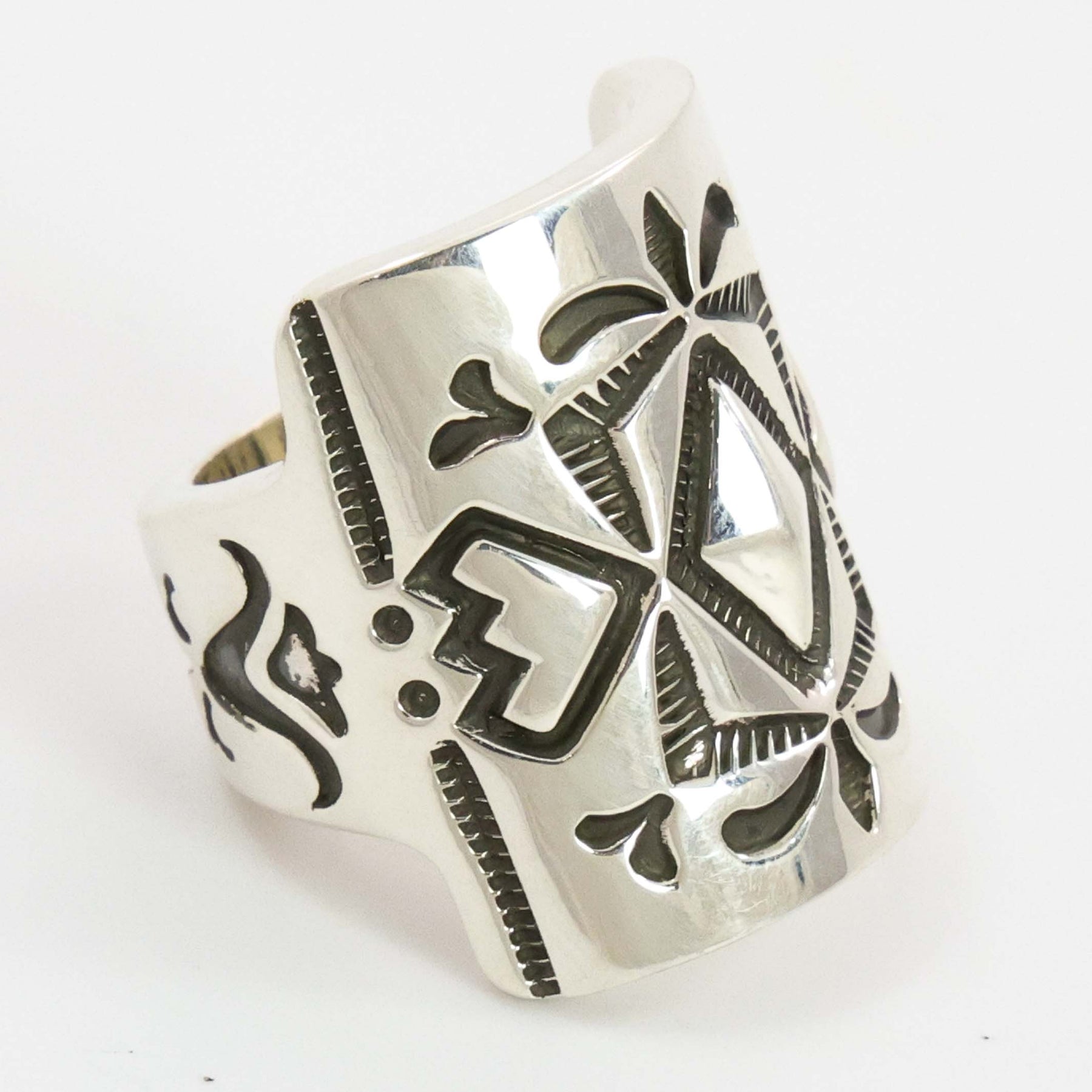 Heavy Gauge Sterling Silver Ring with Intricate Hand Stamped Designs.
