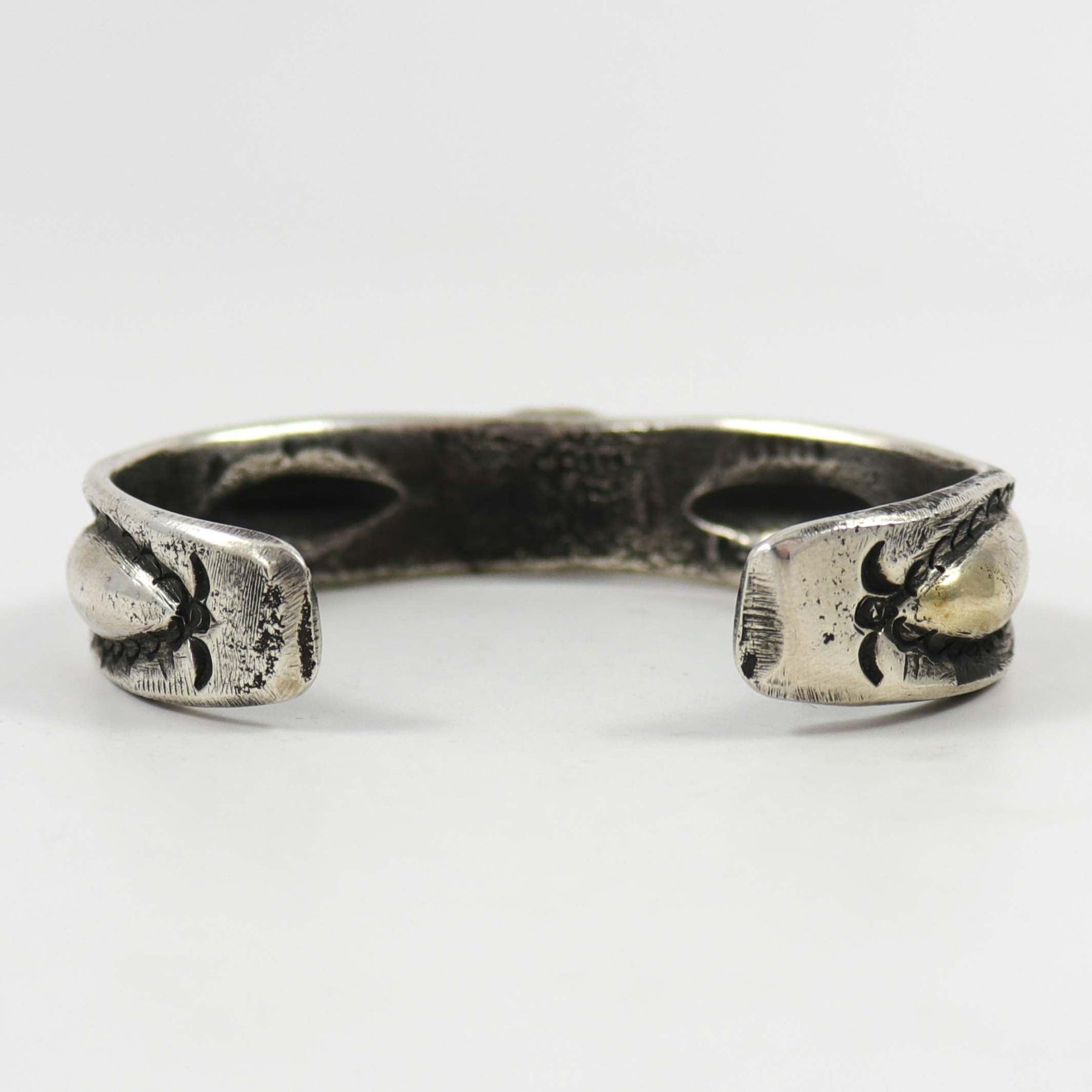 Hand Forged Coin Silver Cuff Bracelet with Hand Stamped Old-Style Designs and set with Natural Fox Turquoise from Nevada.