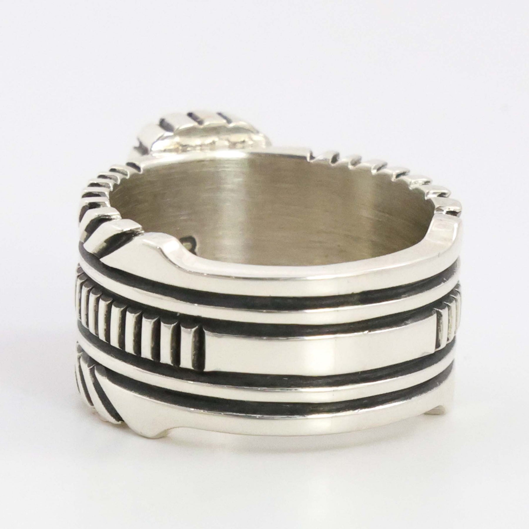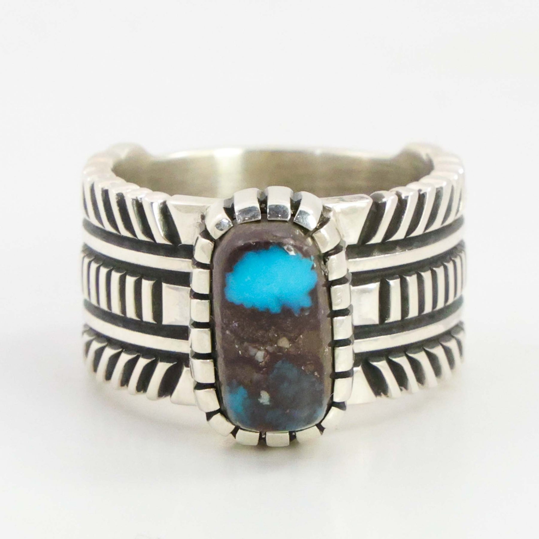 Sterling Silver Ring with Hand-Stamped and Filed Designs and set with Natural Bisbee Turquoise from Arizona.