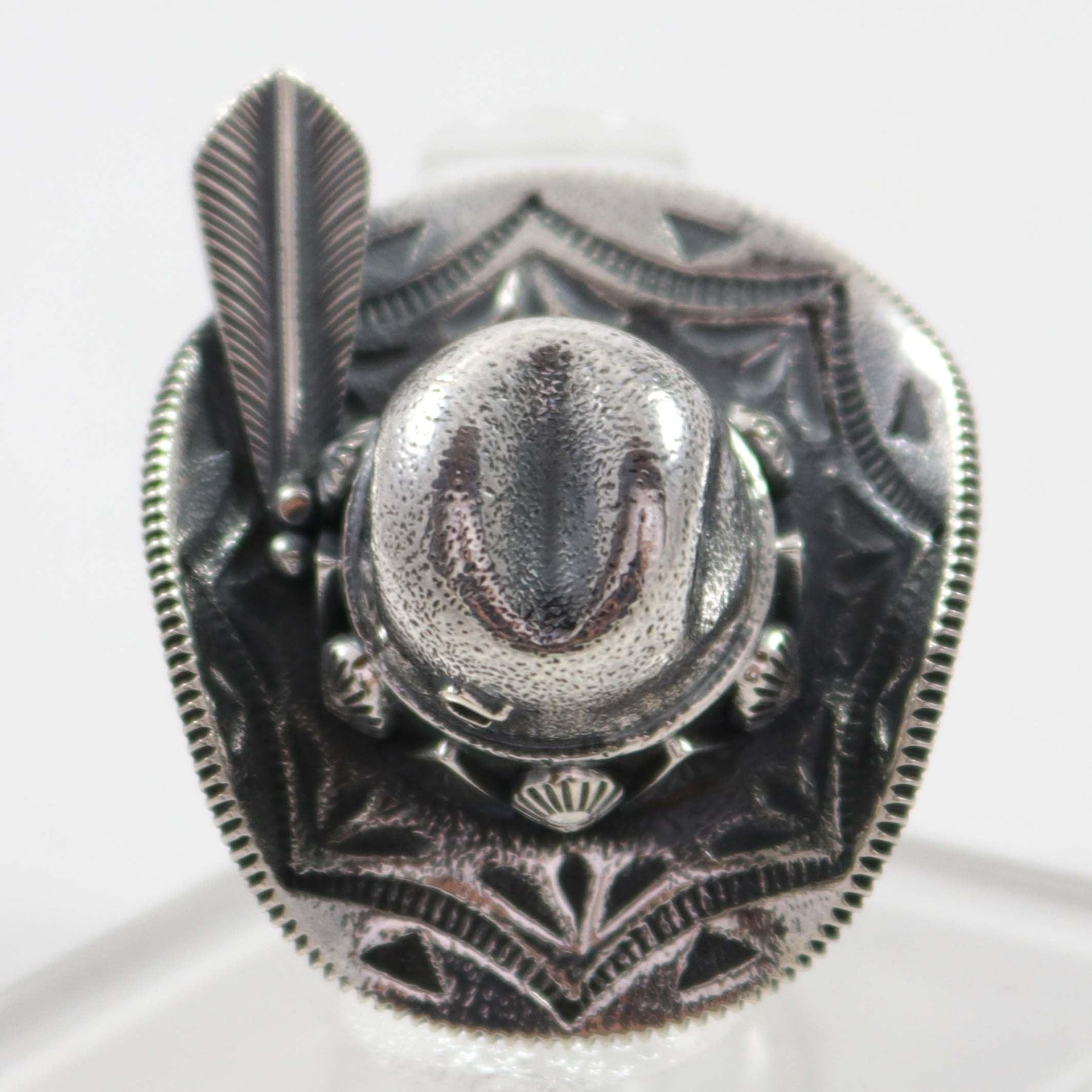 Hand-Forged Sterling Silver Cowboy Hat Ring with Appliqué and Hand-Stamped Designs.