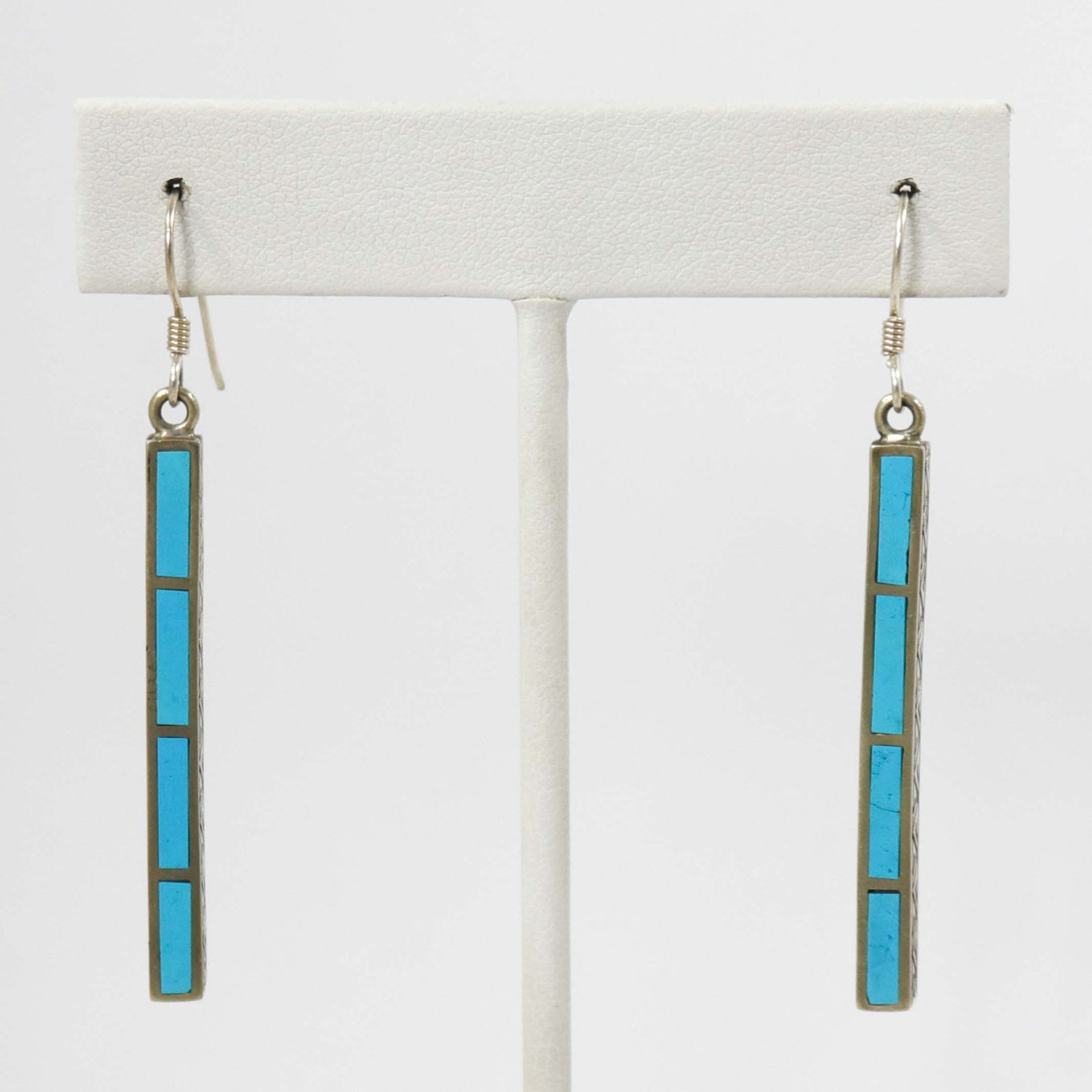 Sterling Silver French Hook Dancing Stick Earrings with Channel Inlaid Turquoise.
