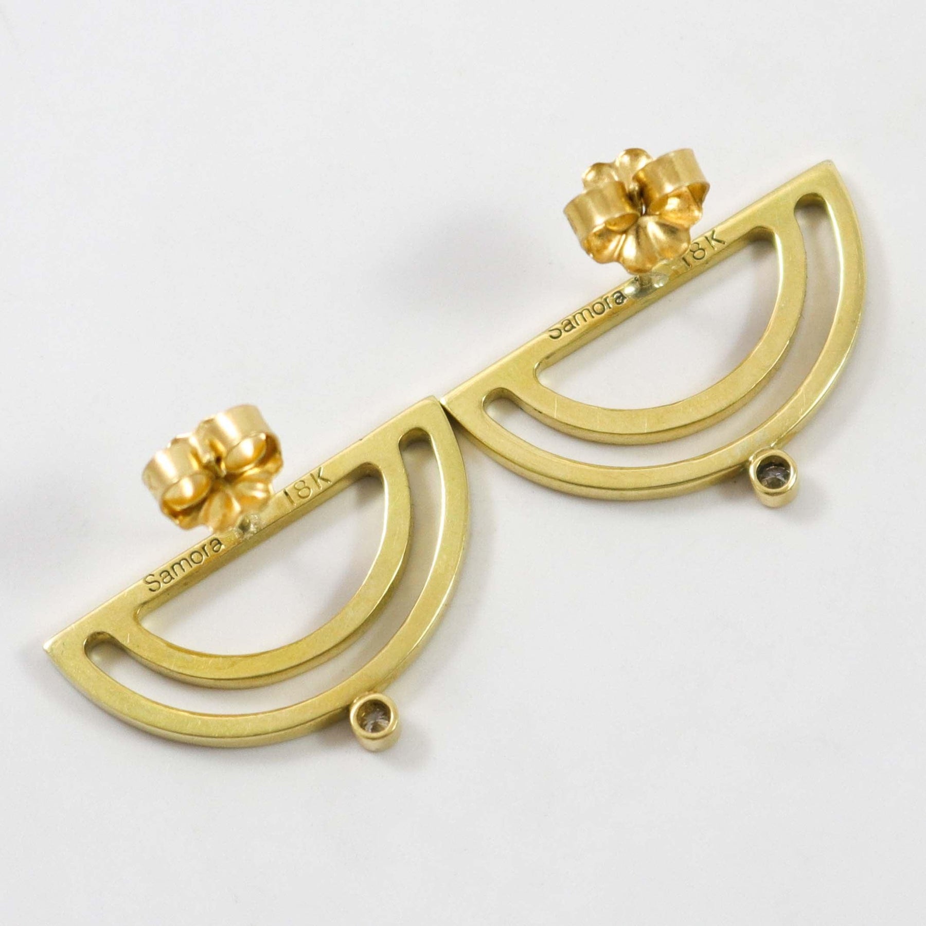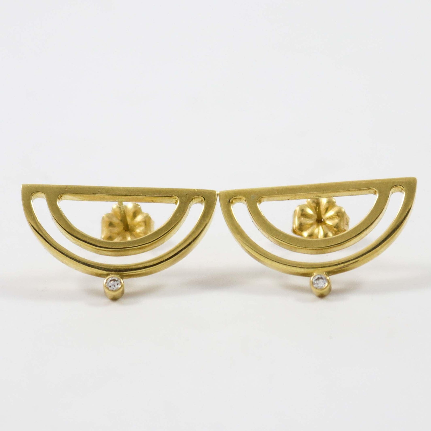 18k Gold “Strata Half Moon” Post Earrings set with Conflict-Free White Diamonds.