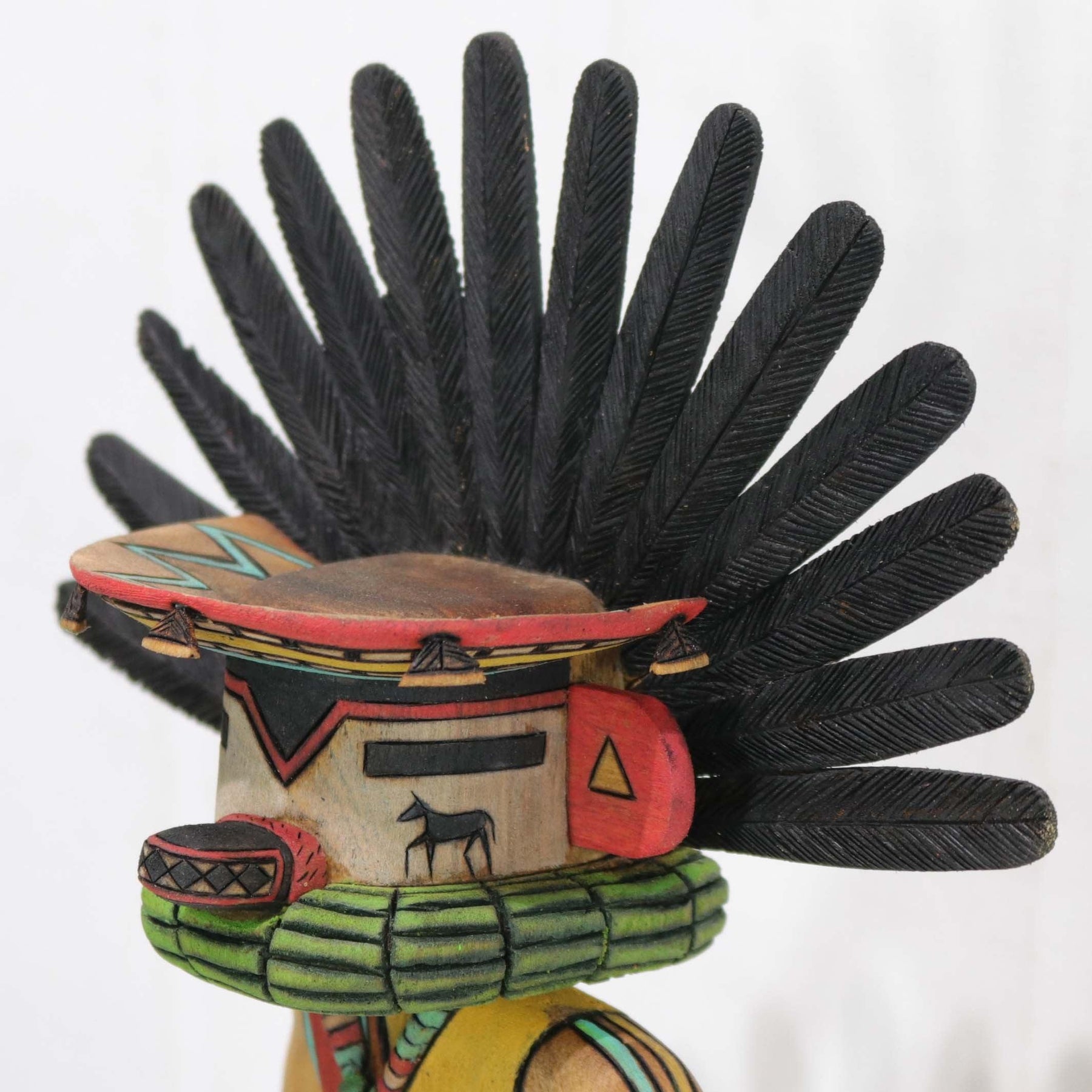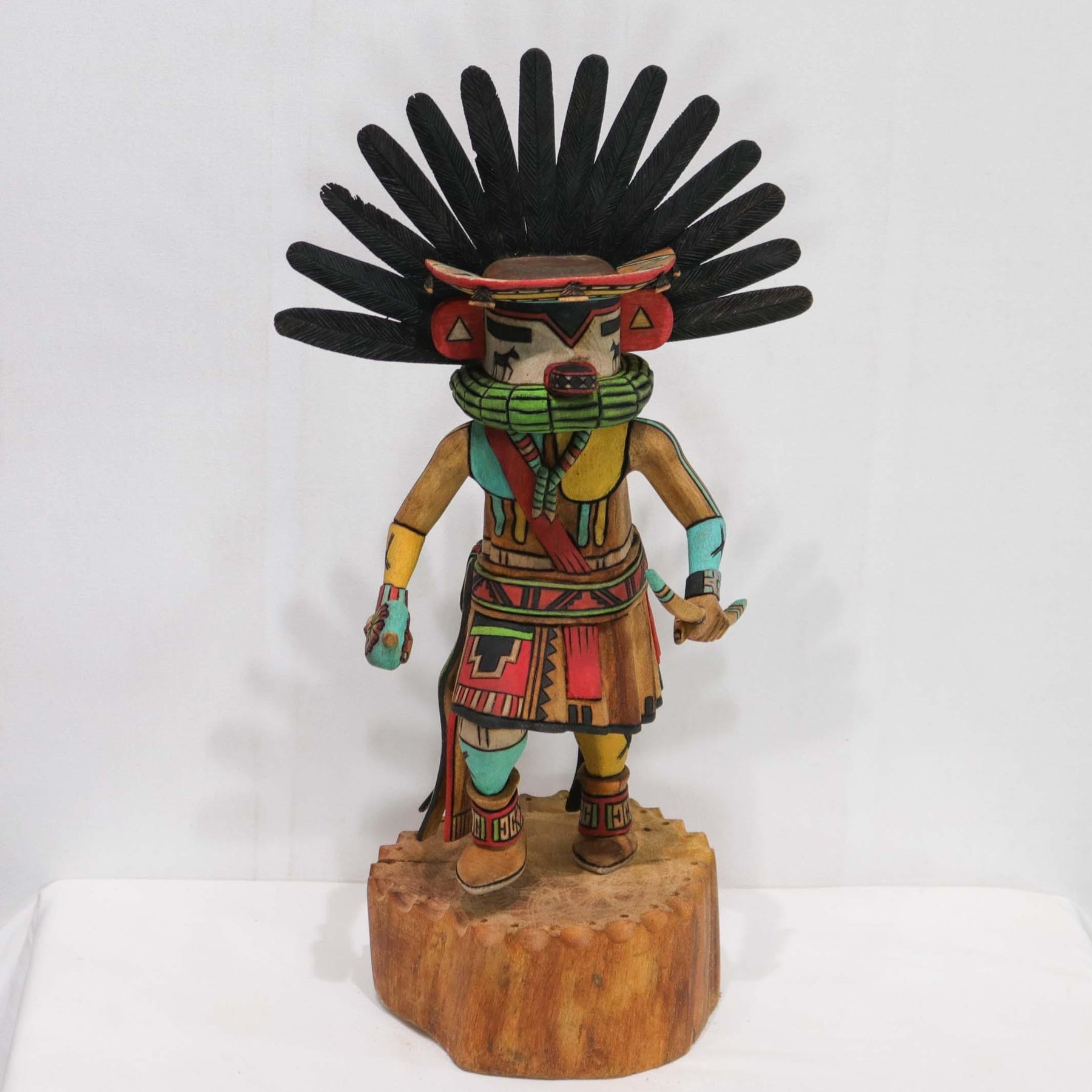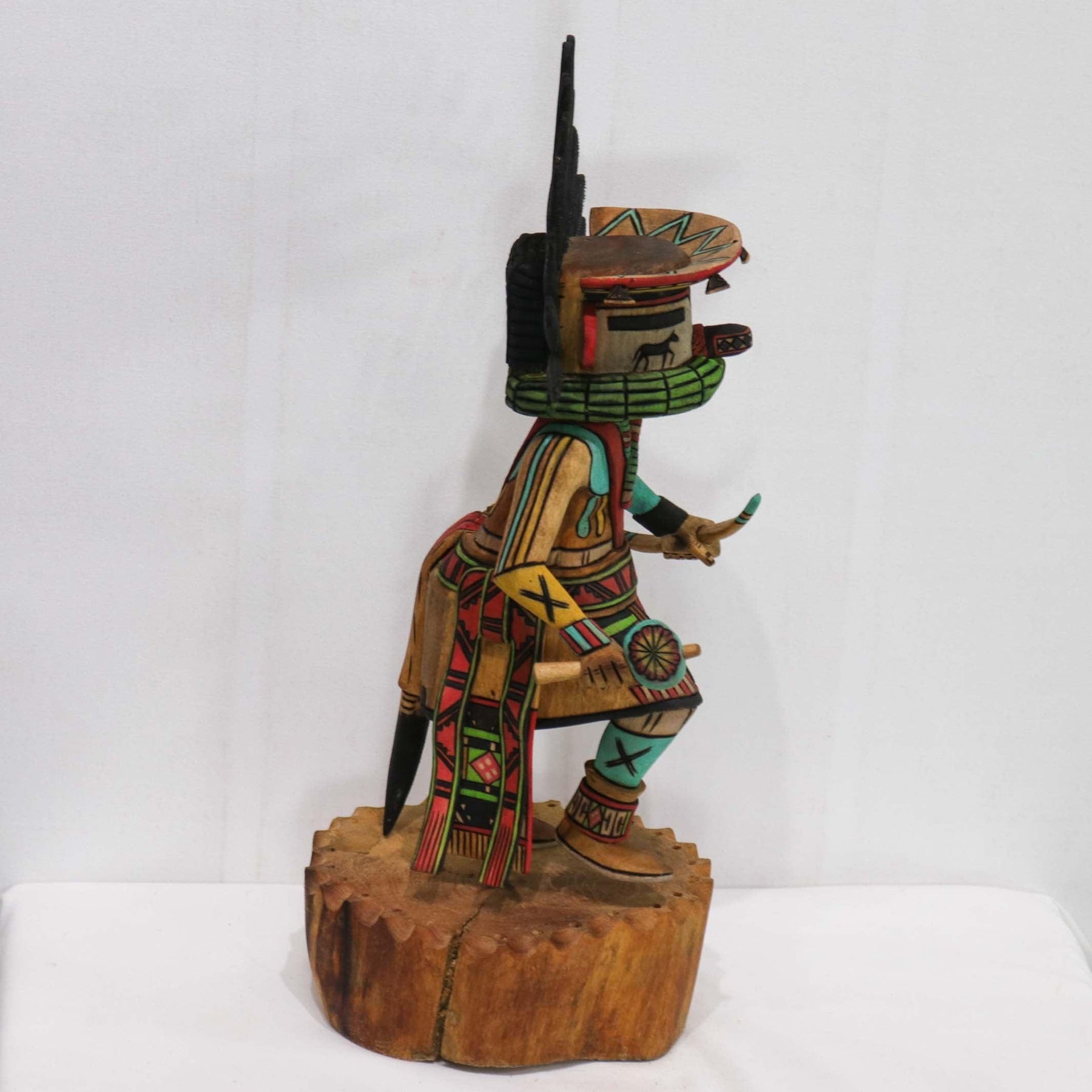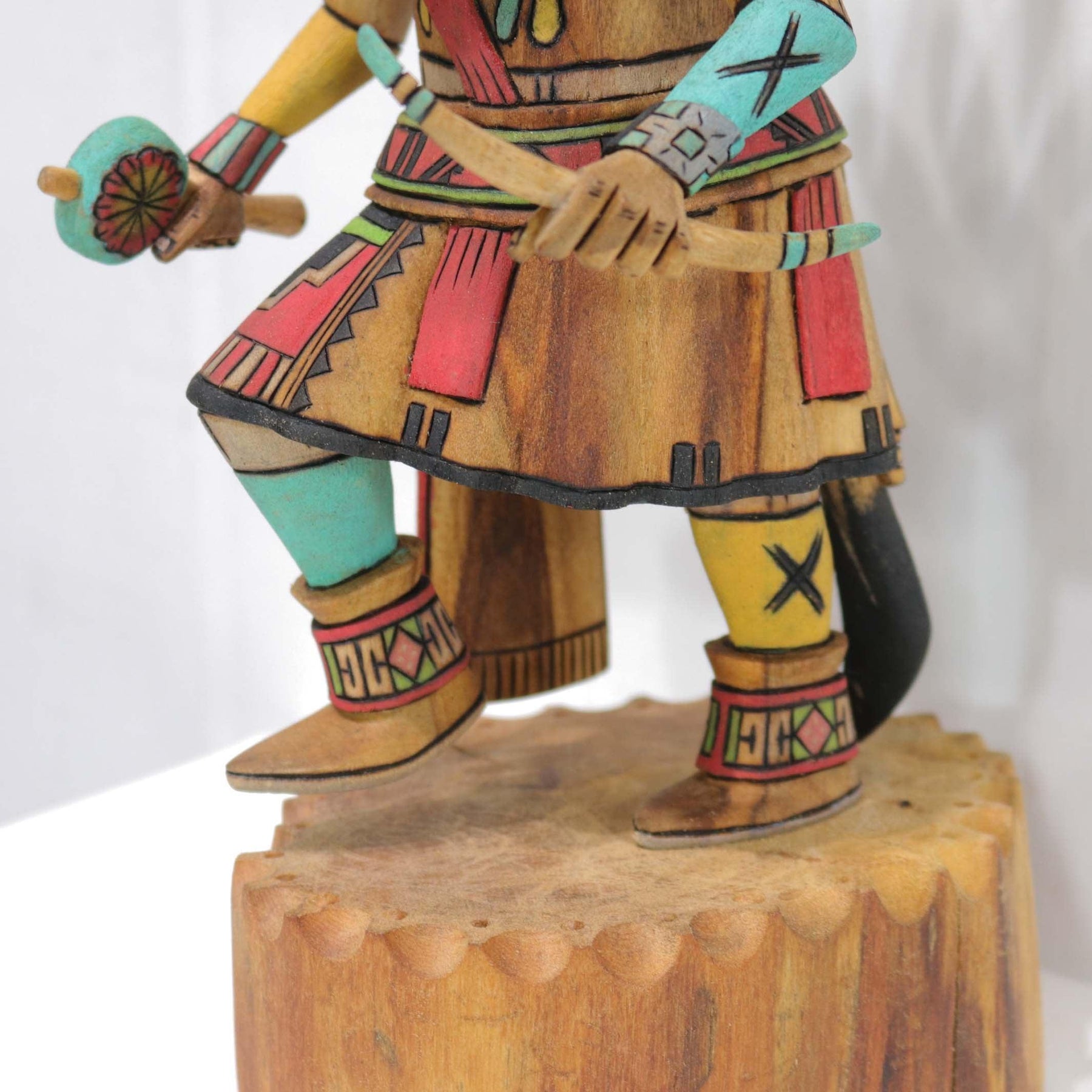 New Style Horse (Ka’wy’yo) Kachina in Dancing Motion Holding a Rattle and a Bow.