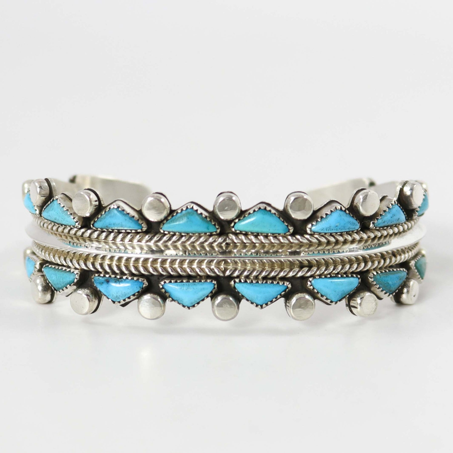 Sterling Silver Cuff Bracelet set with Natural Kingman Turquoise from Arizona.