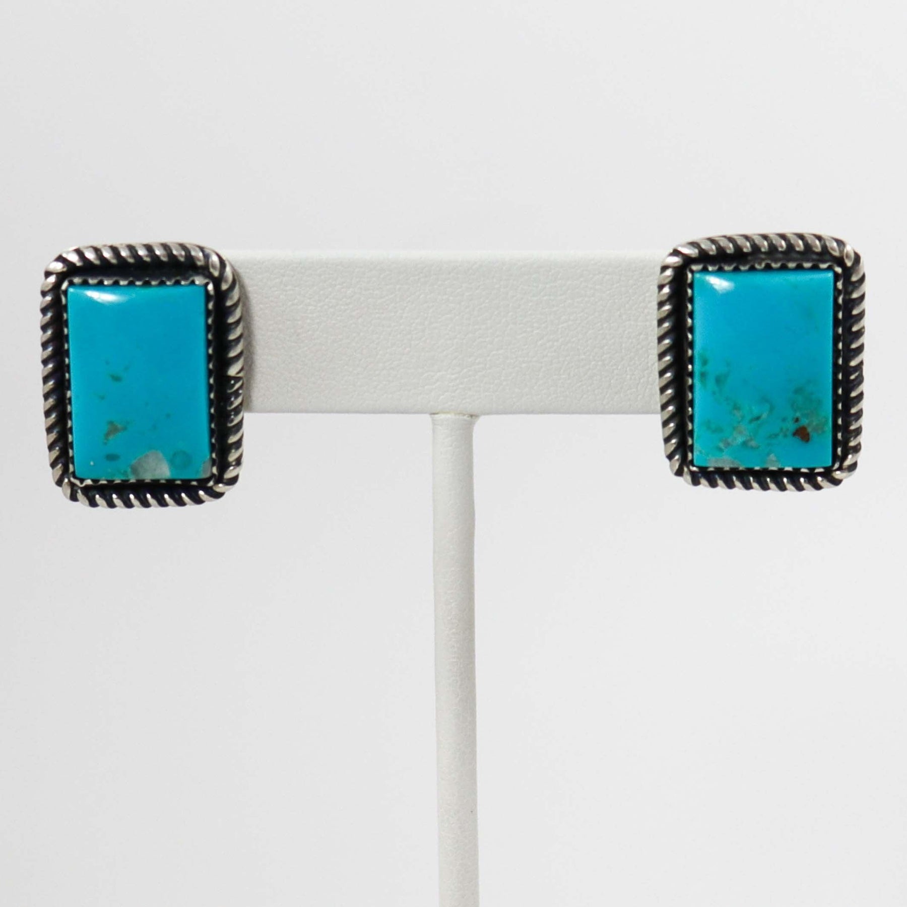Sterling Silver Post Earrings set with Natural Kingman Turquoise from Arizona.