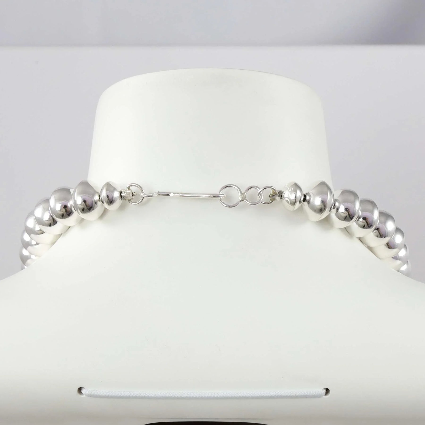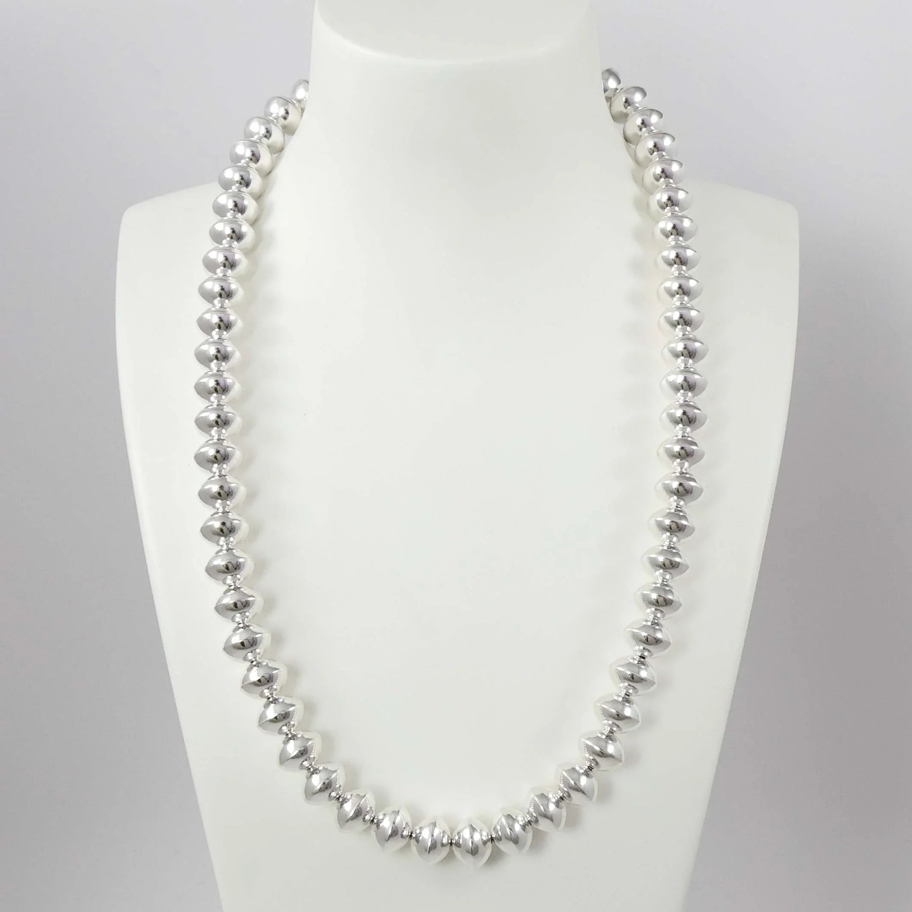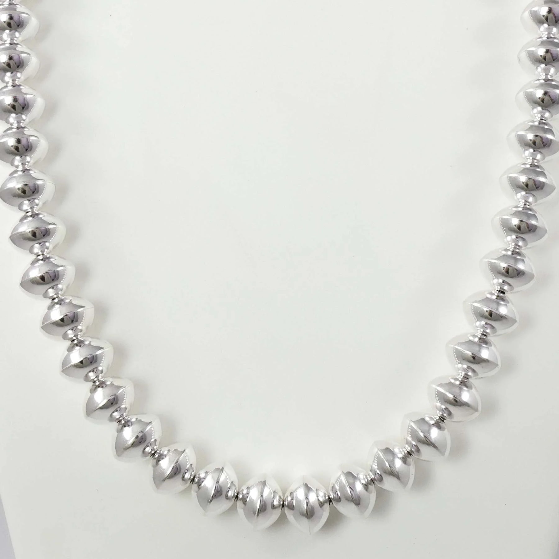 Single Strand Sterling Silver Navajo Pearl Necklace with Handmade Beads in a High Polish Finish.