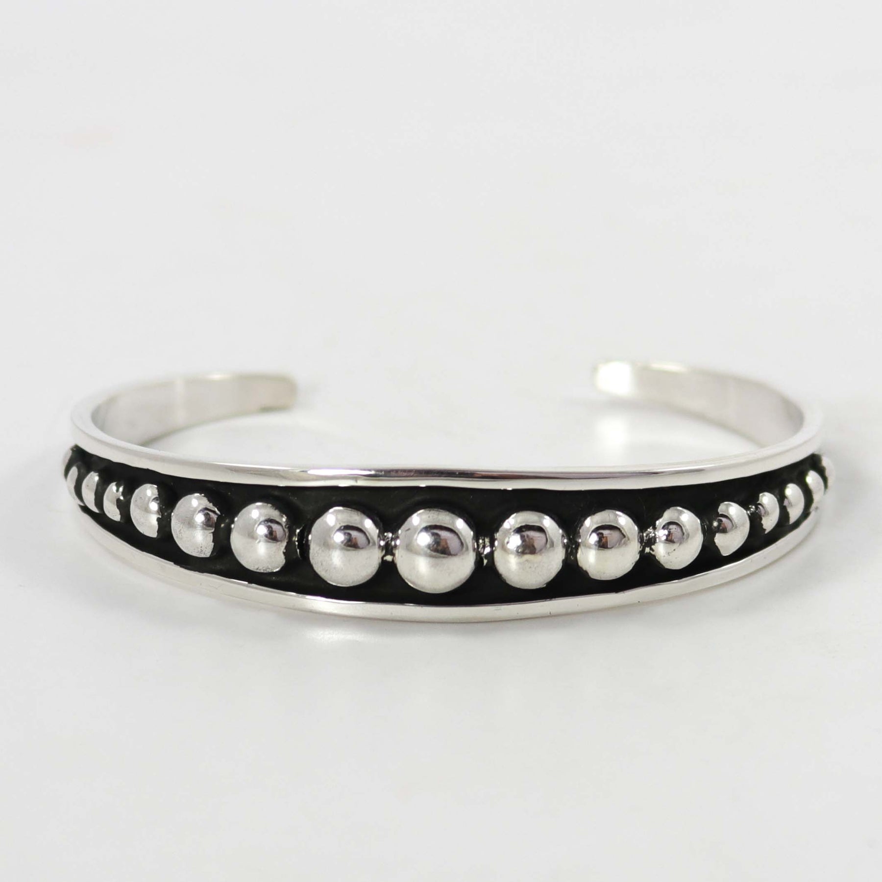 Sterling Silver Cuff Bracelet with Raised Circular Designs.