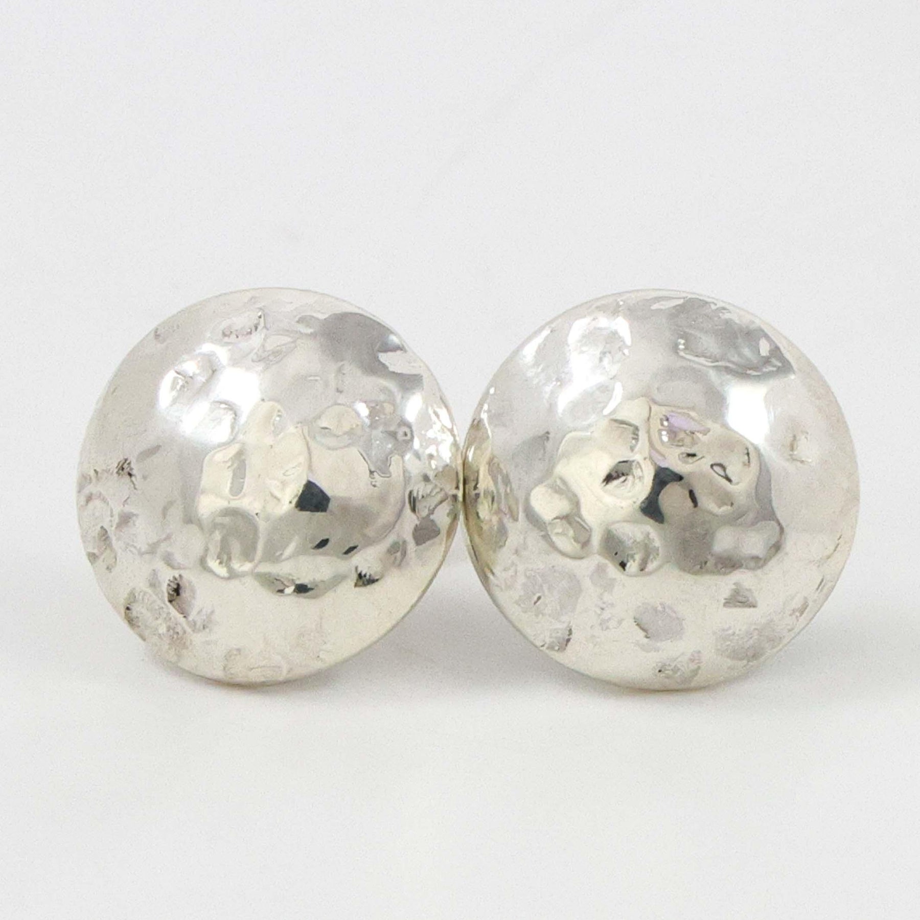 Sterling Silver Post Button Earrings with Hand-Hammered Texture.