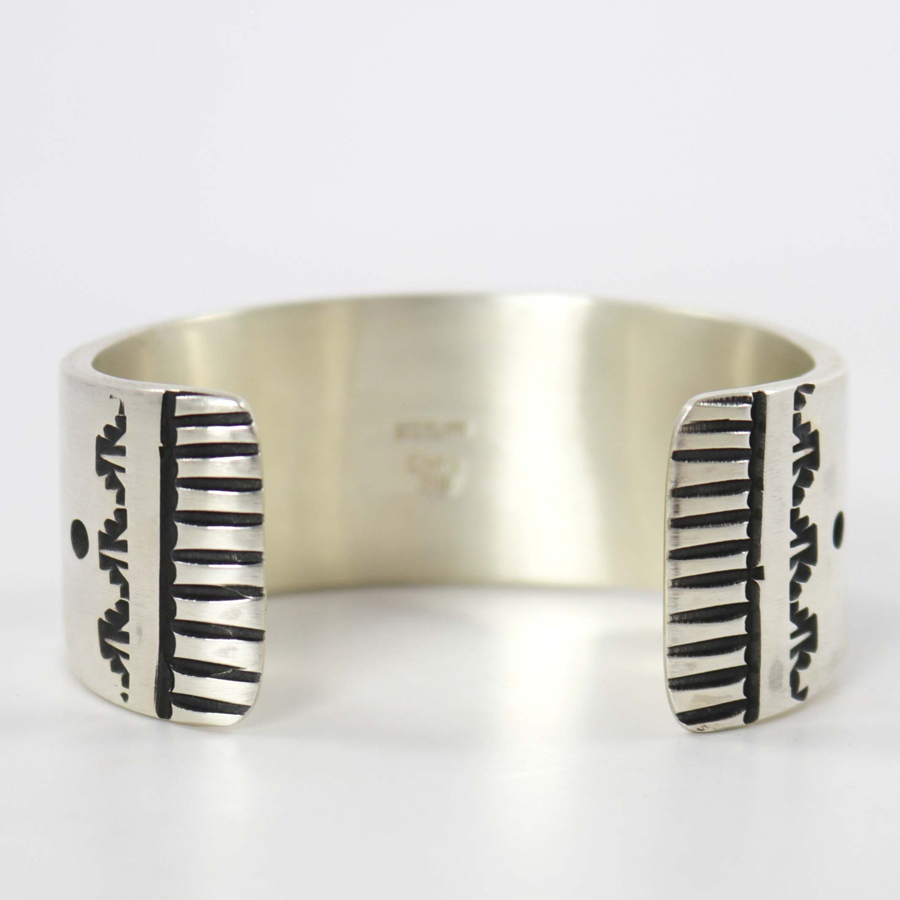 Heavy Gauge Sterling Silver Cuff Bracelet with Deeply Stamped Lines or “Tracks.”