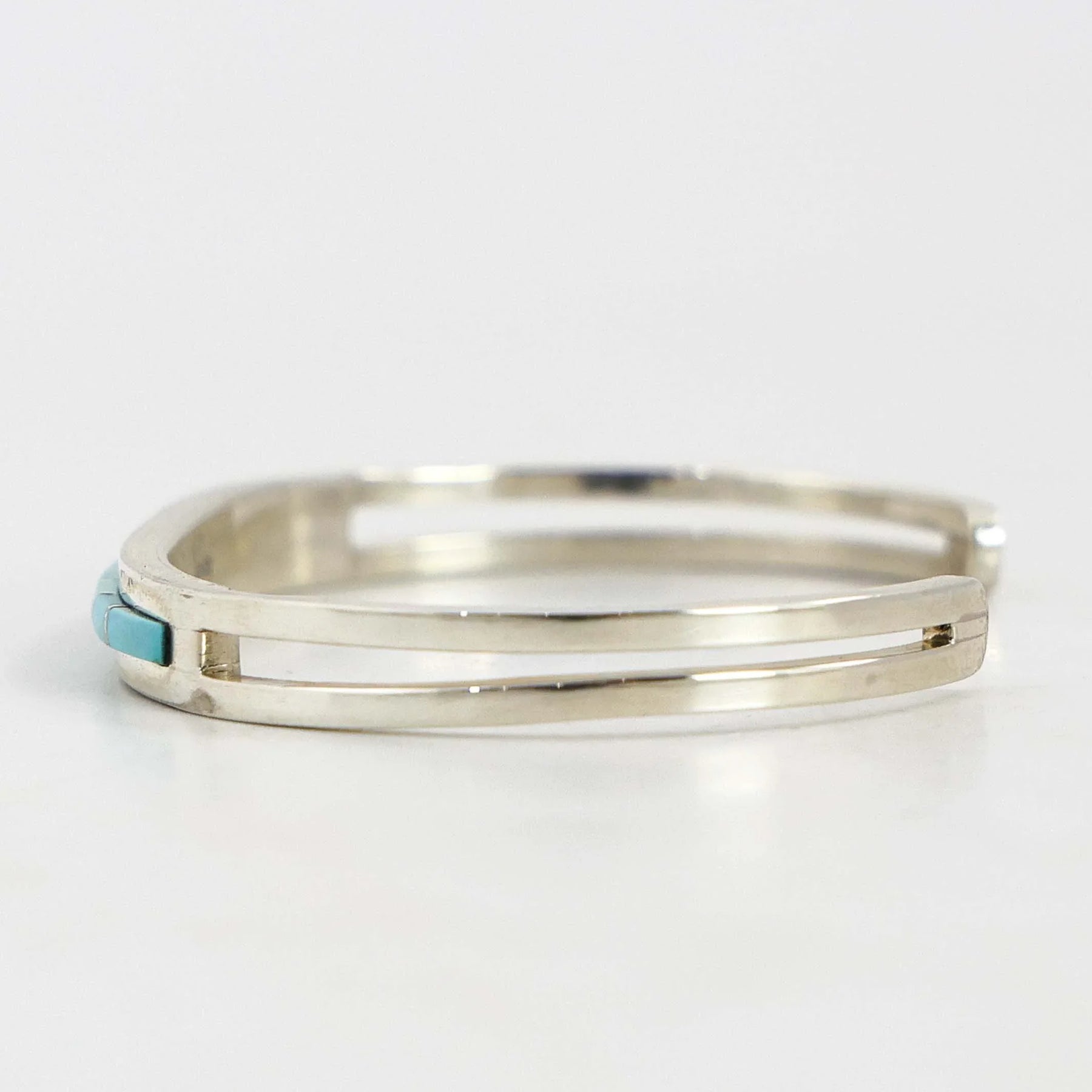 Sterling Silver Split Band Cuff Bracelet featuring a Channel Inlaid Design using Sleeping Beauty Turquoise from Arizona.