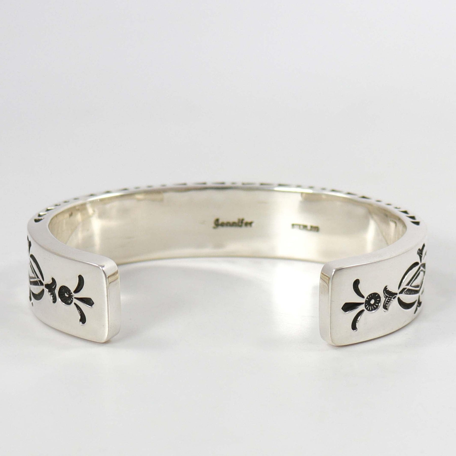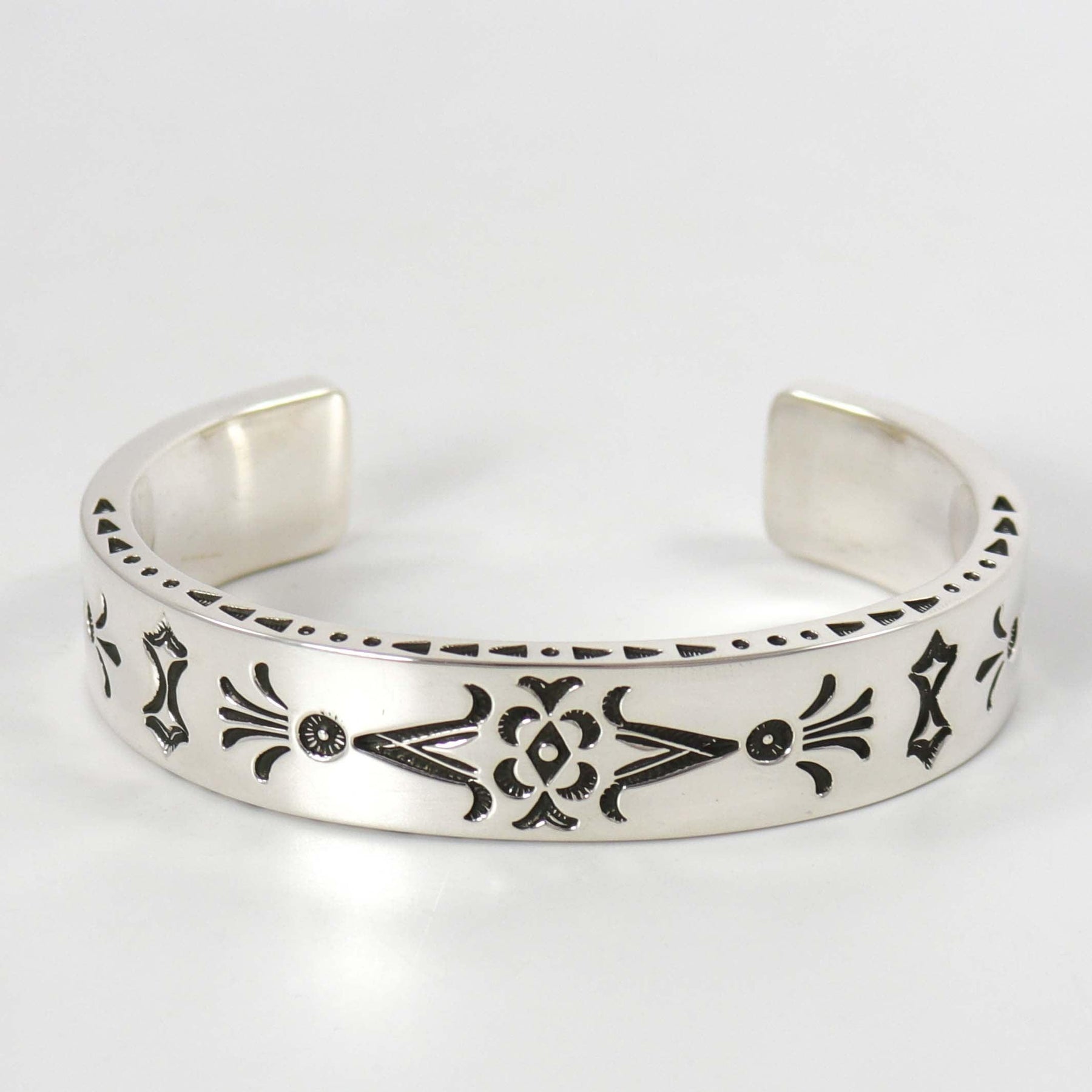 Heavy Gauge Sterling Silver Cuff Bracelet with Hand-Stamped Designs by Award-Winning Navajo Silversmith, Jennifer Curtis.