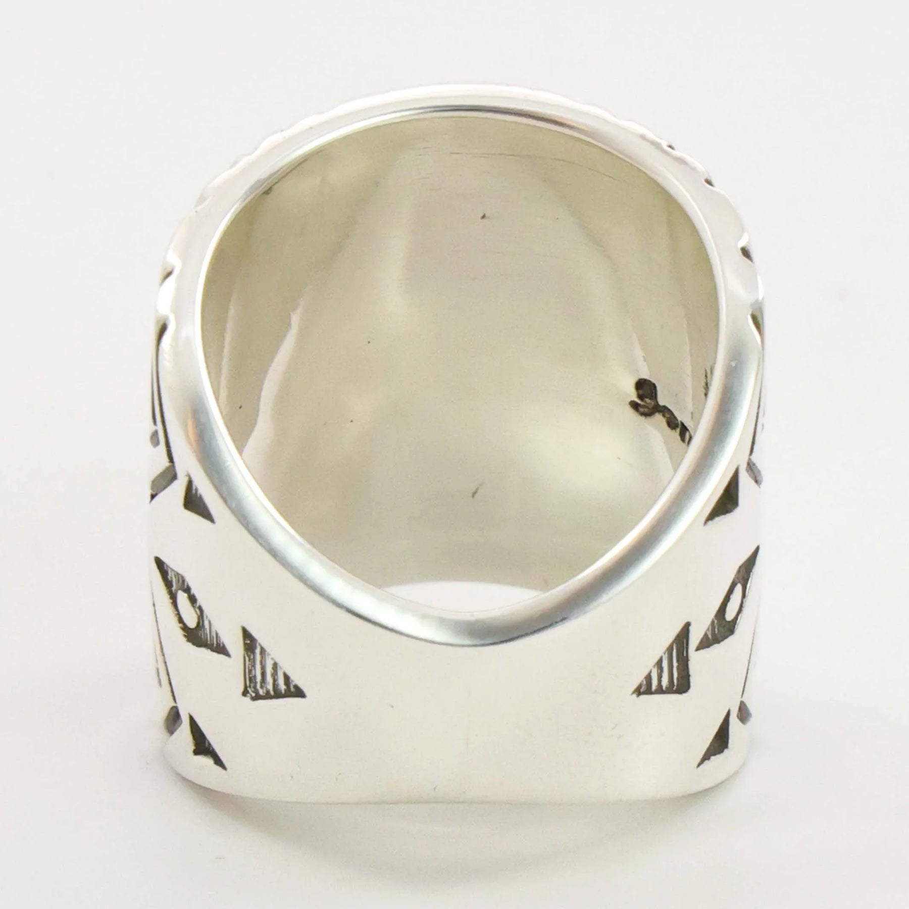 Heavy Gauge Sterling Silver Ring with Intricate Hand Stamped Designs.