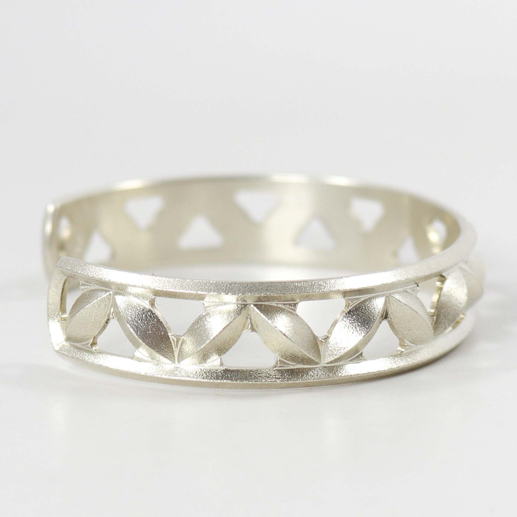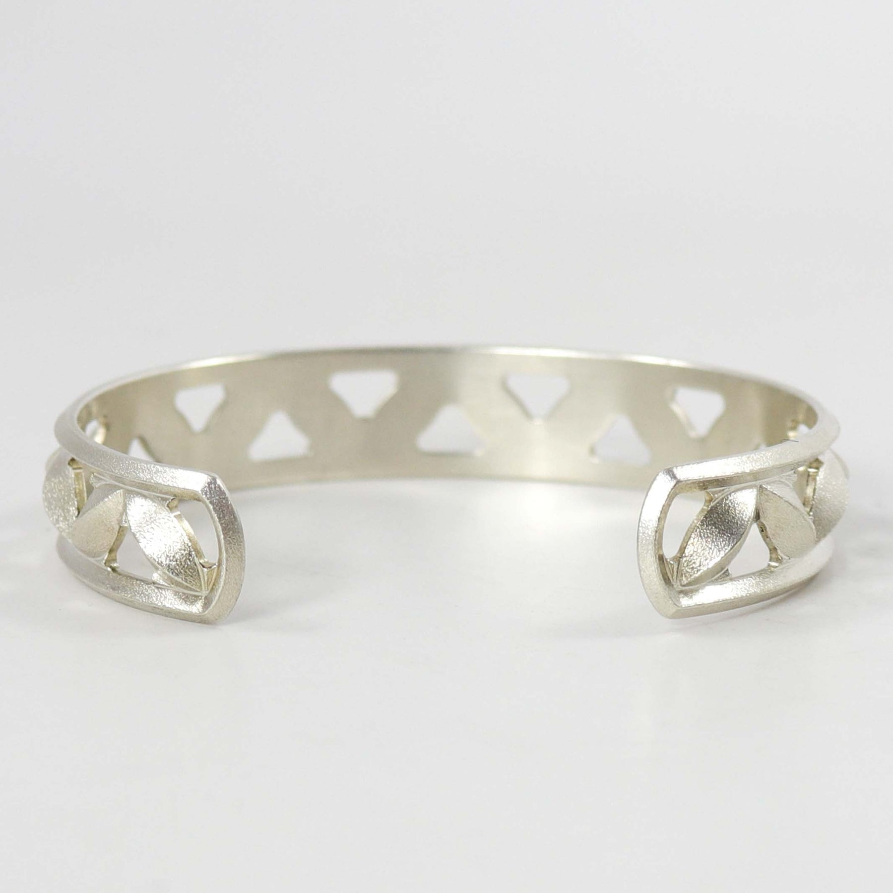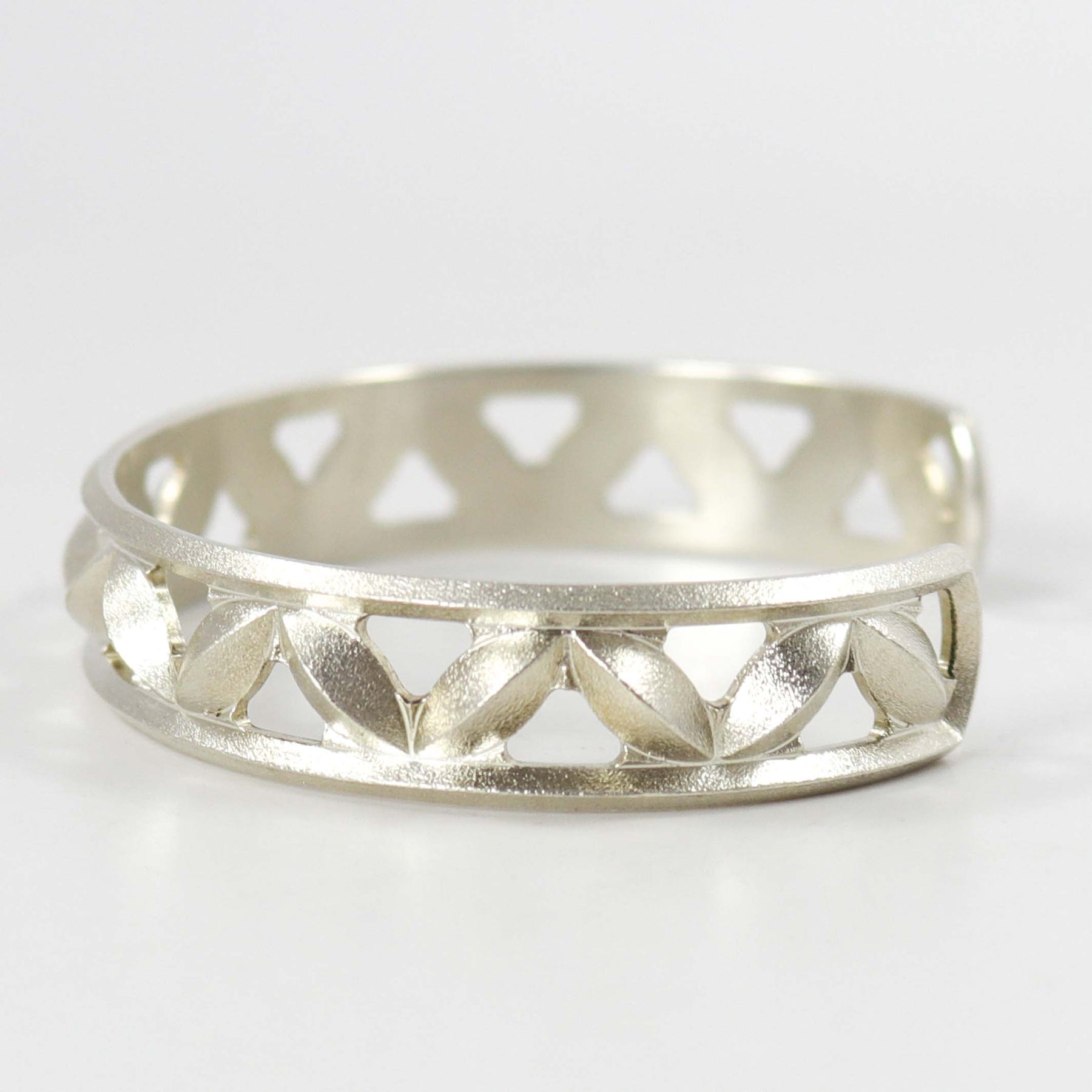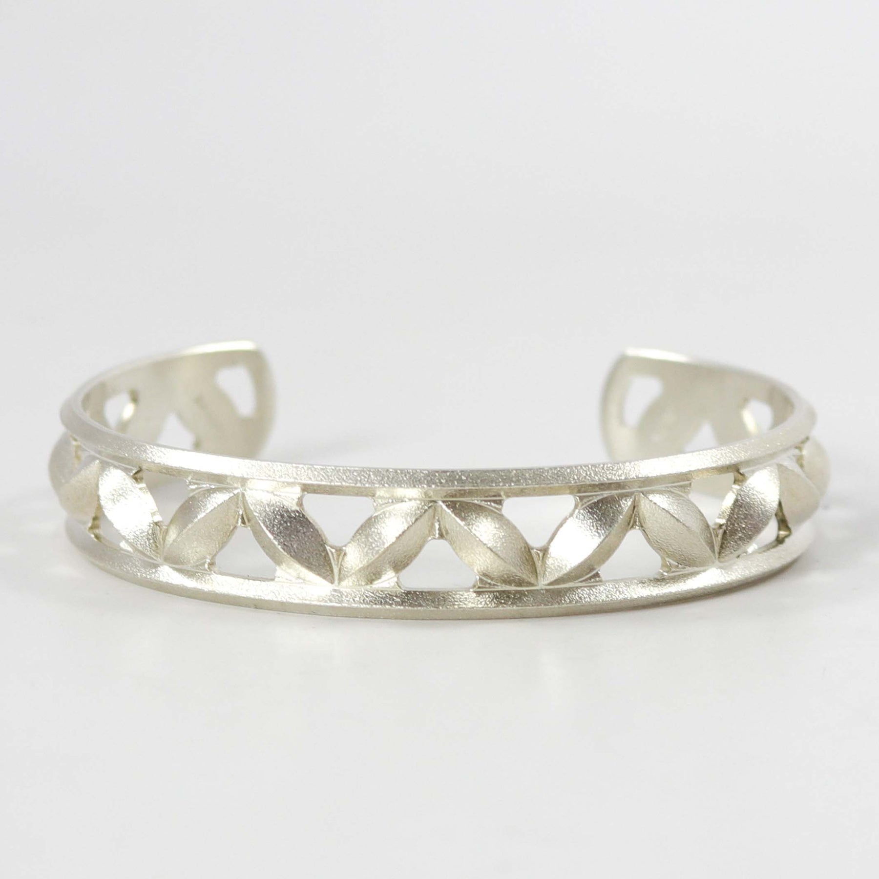 Sterling Silver “Sweet Pea” Cuff Bracelet in a Satin Matte Finish.