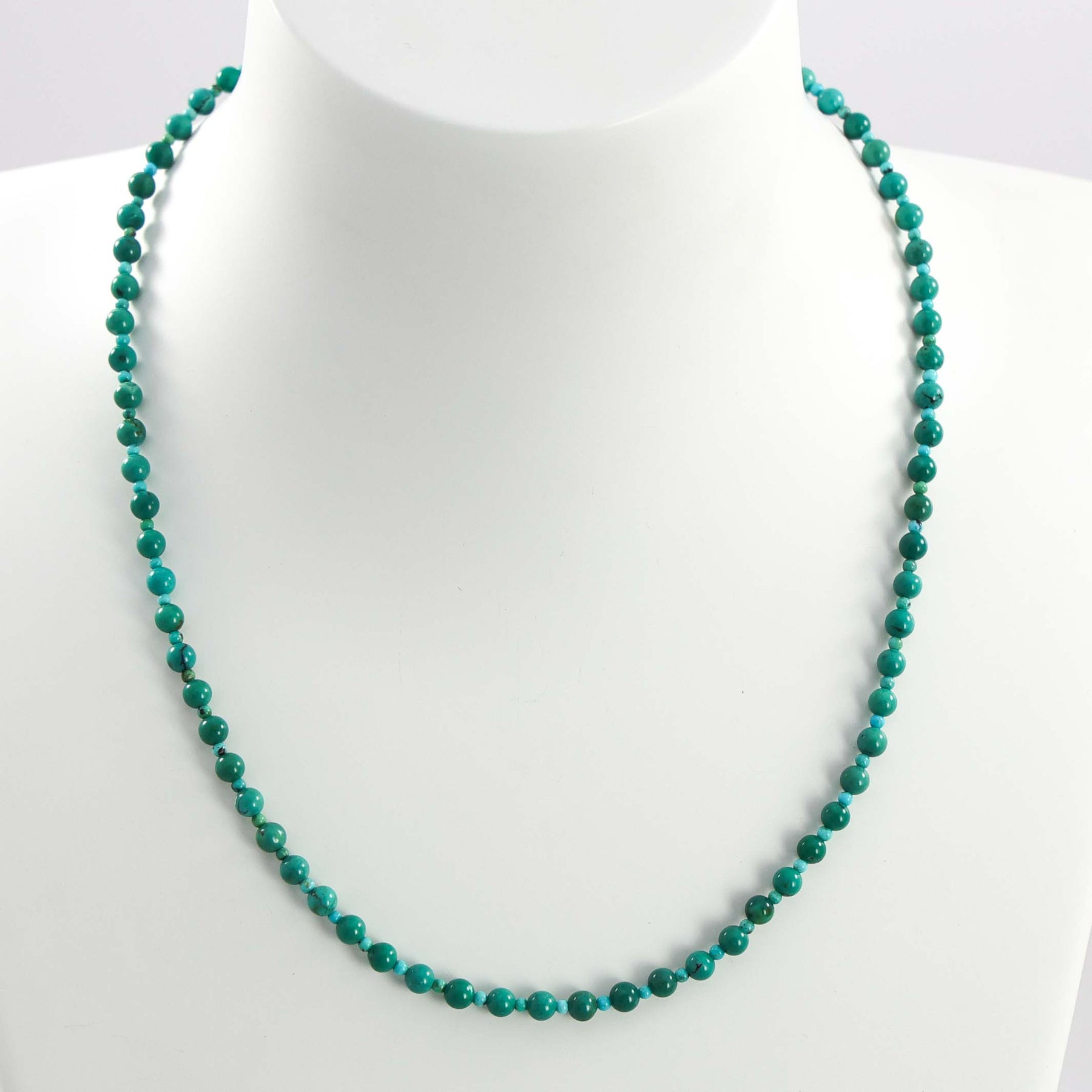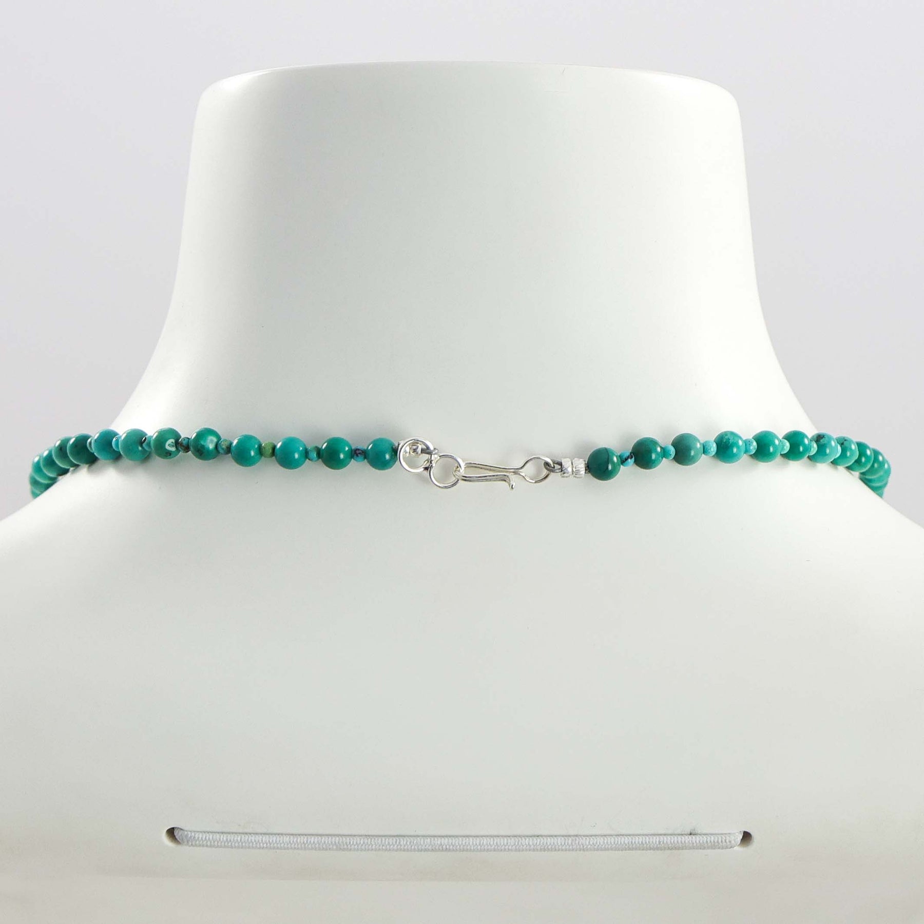 Single Strand Bead Necklace with Stabilized Turquoise Beads. This necklace features a sterling silver clasp.