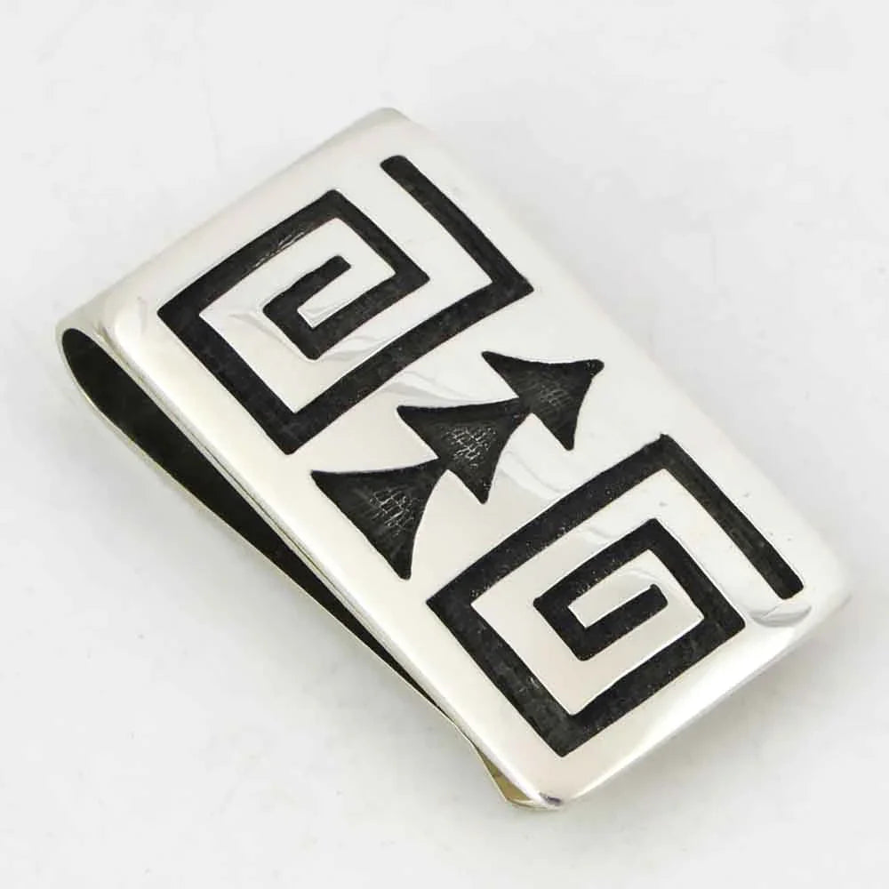 Stainless Steel Money Clip with a Sterling Silver Face featuring Hopi Overlay Water Ripple Design.