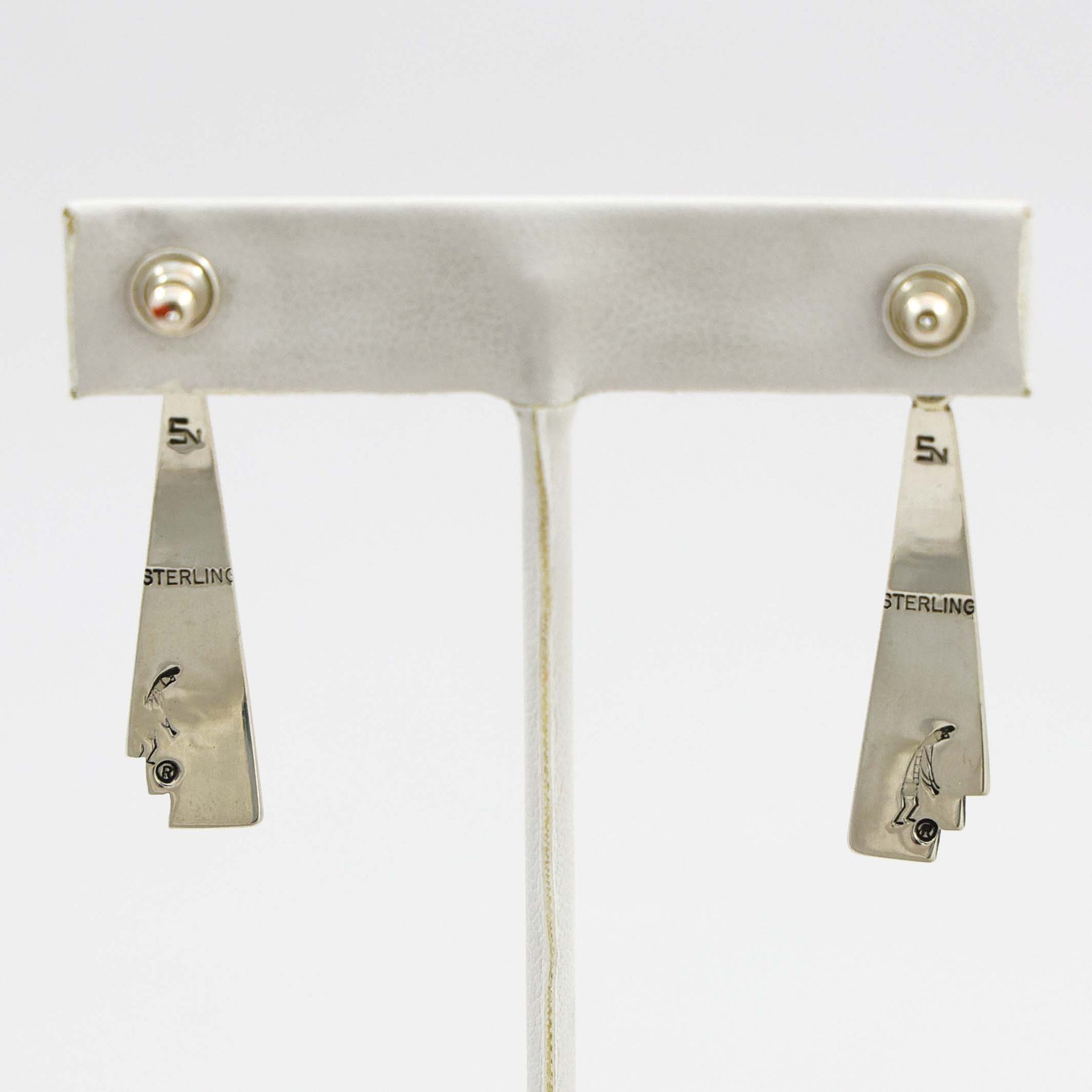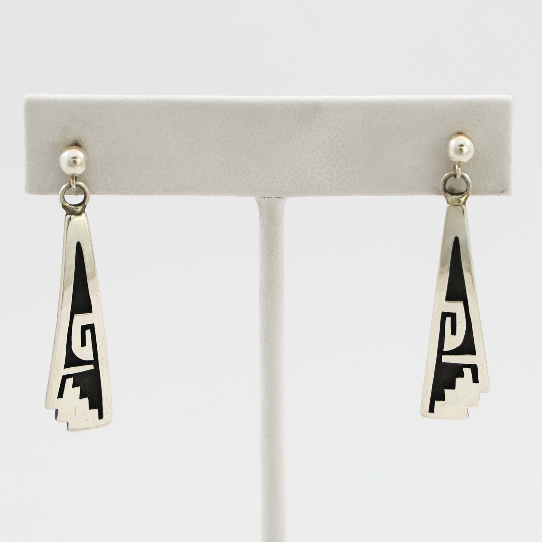Sterling Silver Post Button with Dangle Earrings Hopi Overlaid Cloud and Water Design Elements.