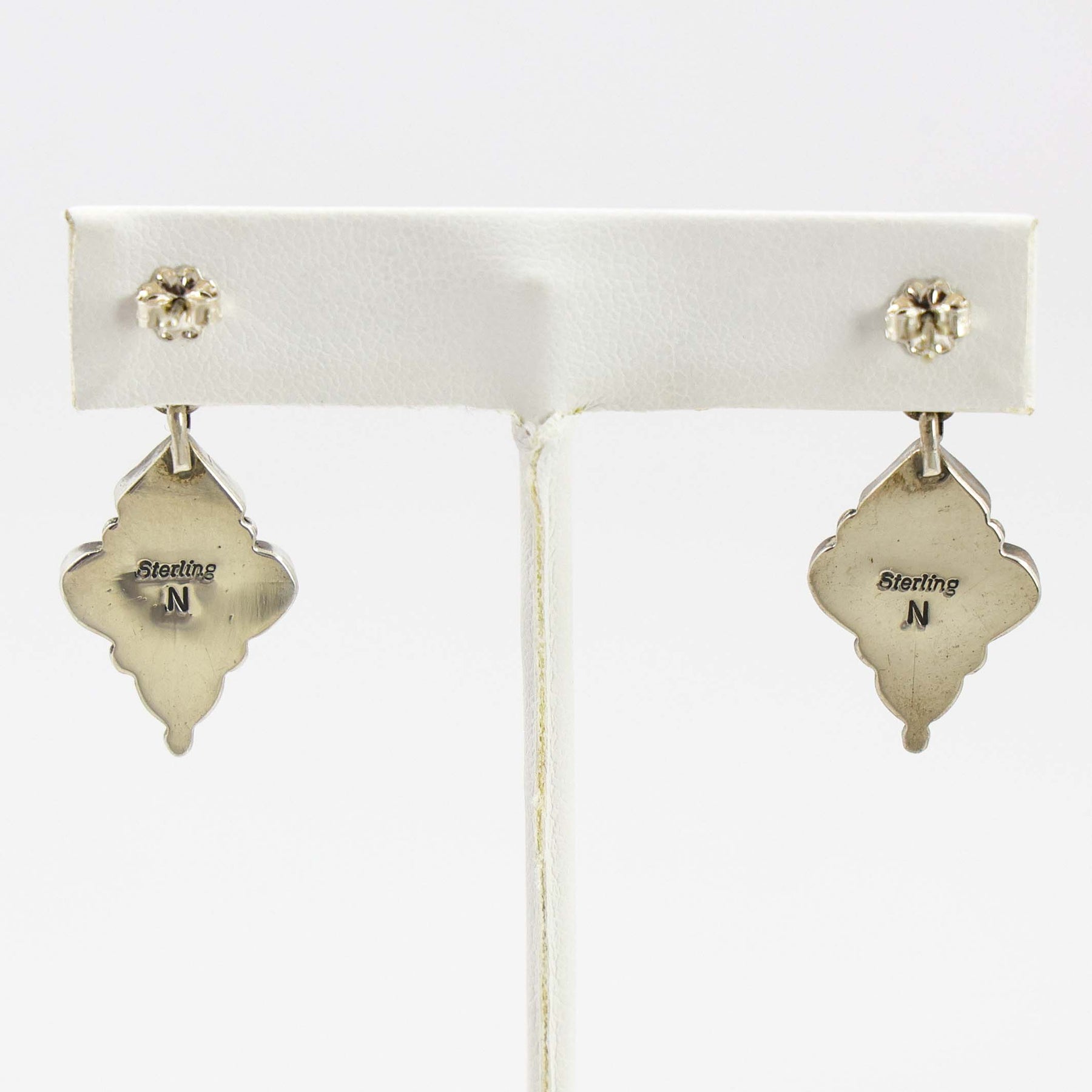 Sterling Silver Post Button with Dangle Earrings set with Spiny Oyster Shell and Mediterranean Coral.