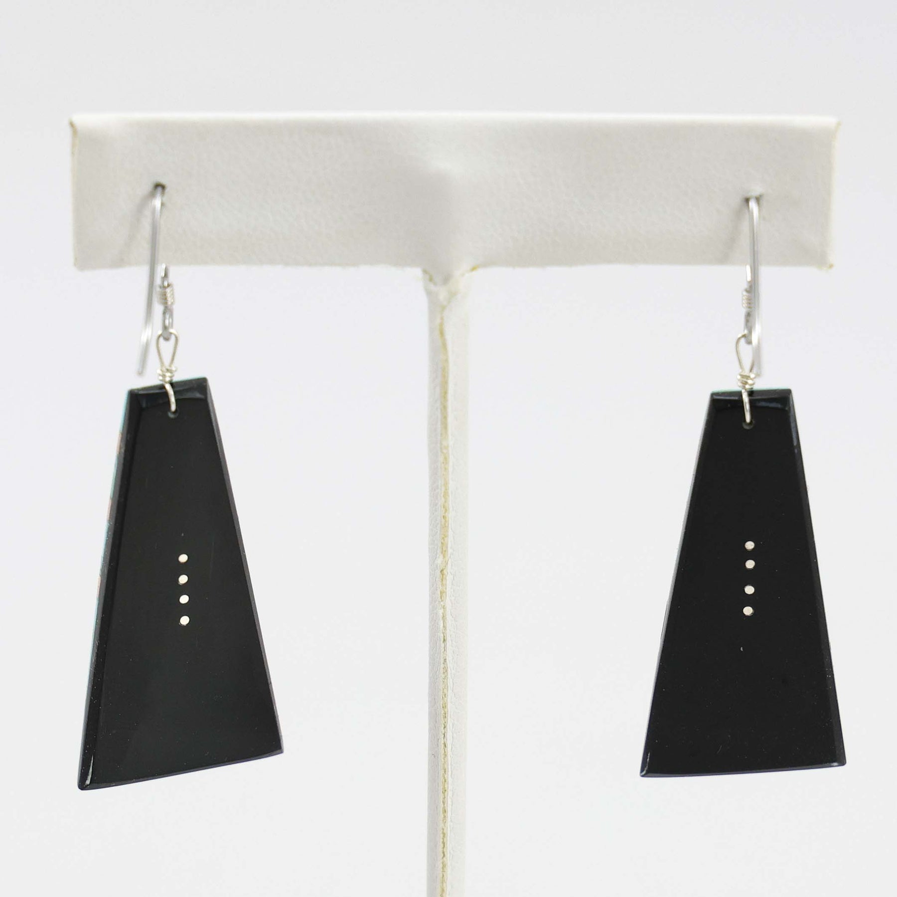 Sterling Silver French Hook Earrings with Stabilized Kingman Turquoise and Copper Inlaid on Jet.