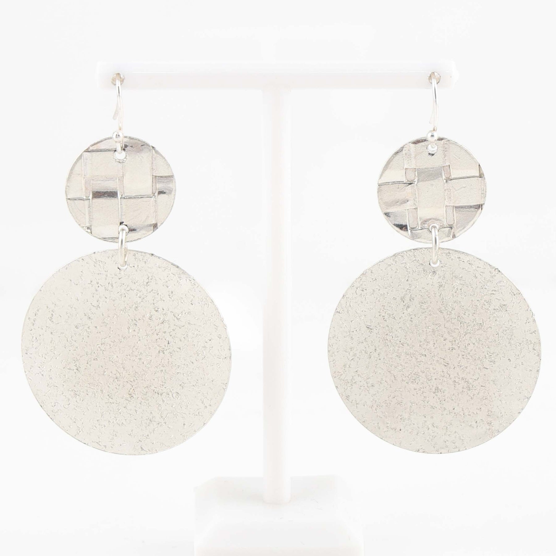 Sterling Silver French Hook Earrings with Dangles in a Basket Weave Design and Tufa Cast Texture.