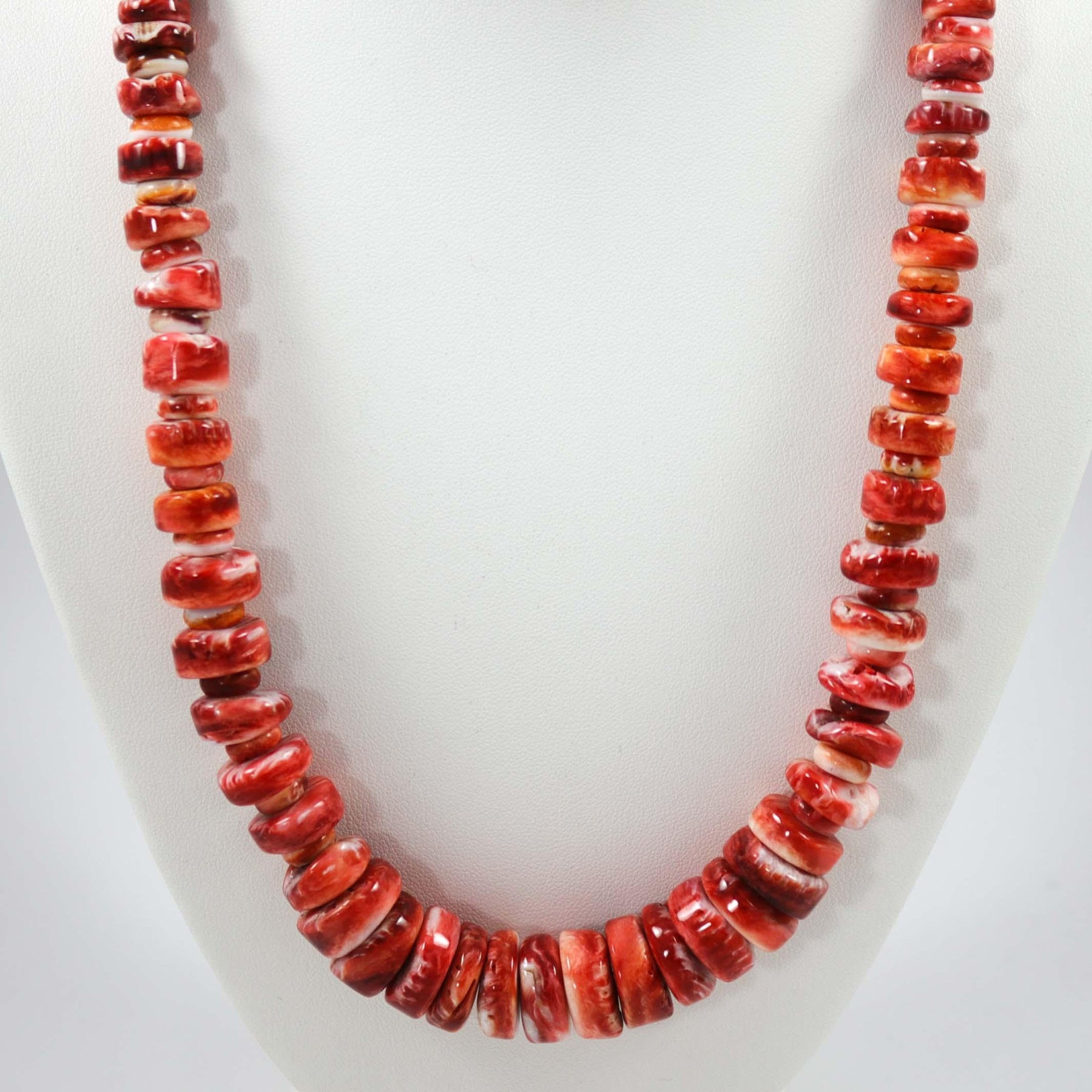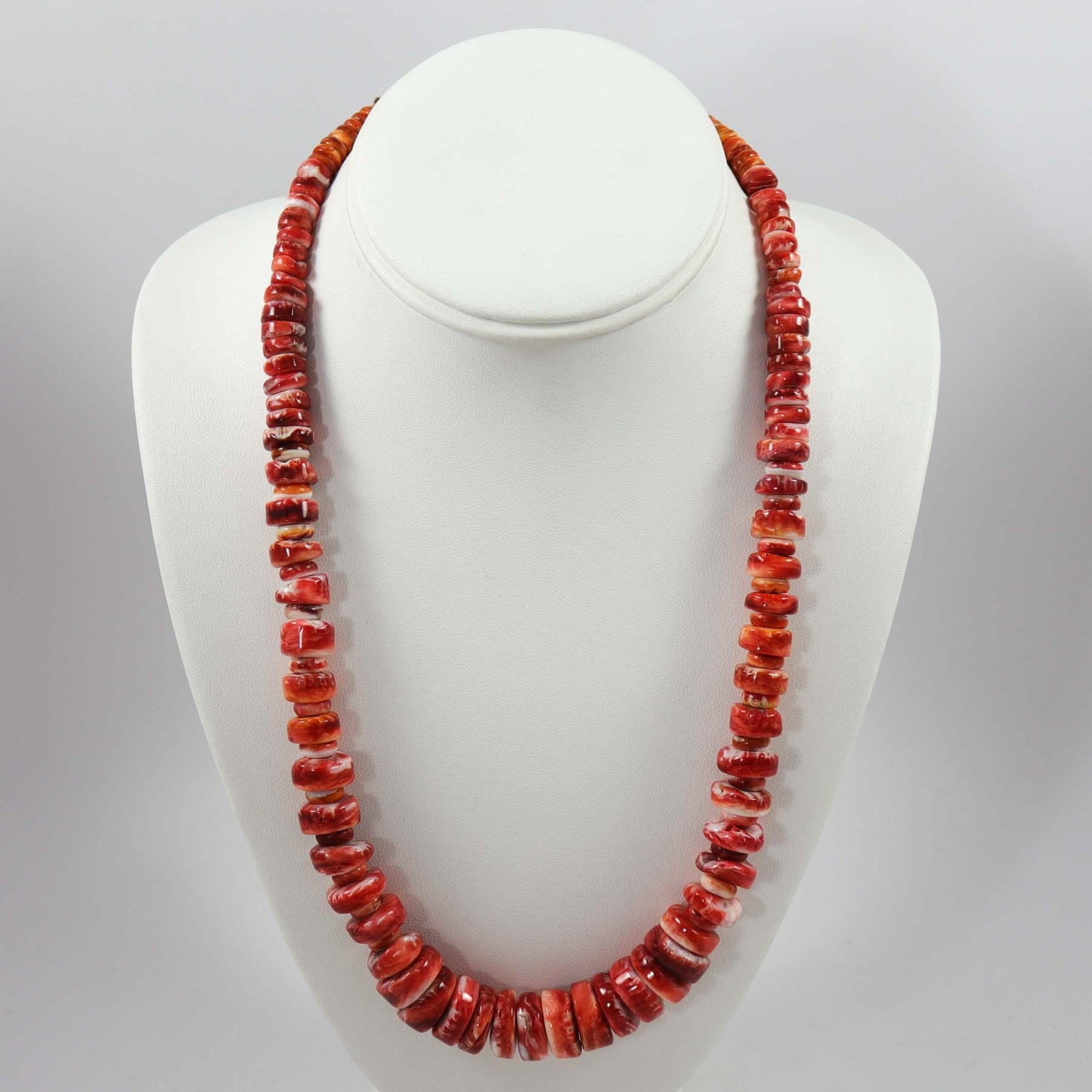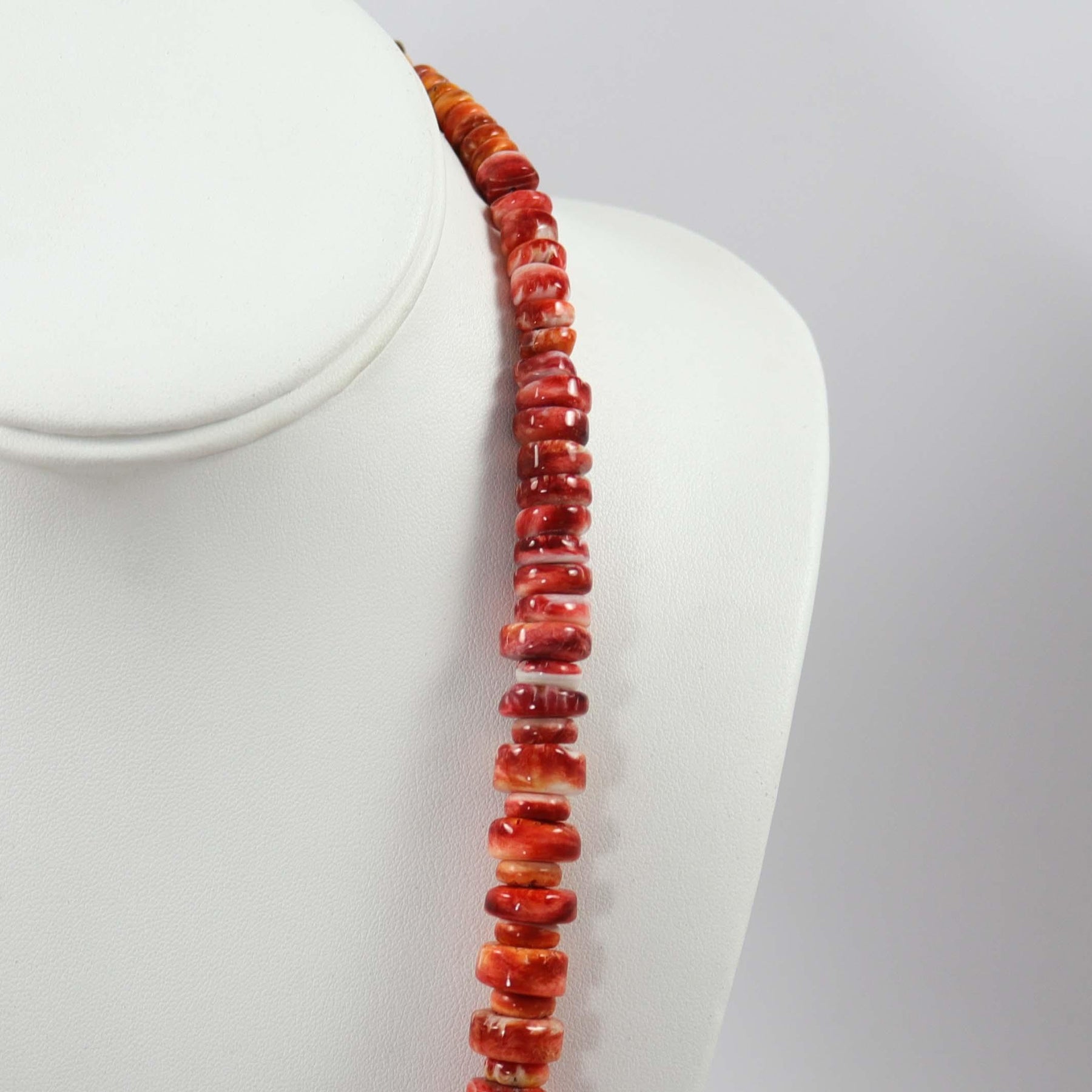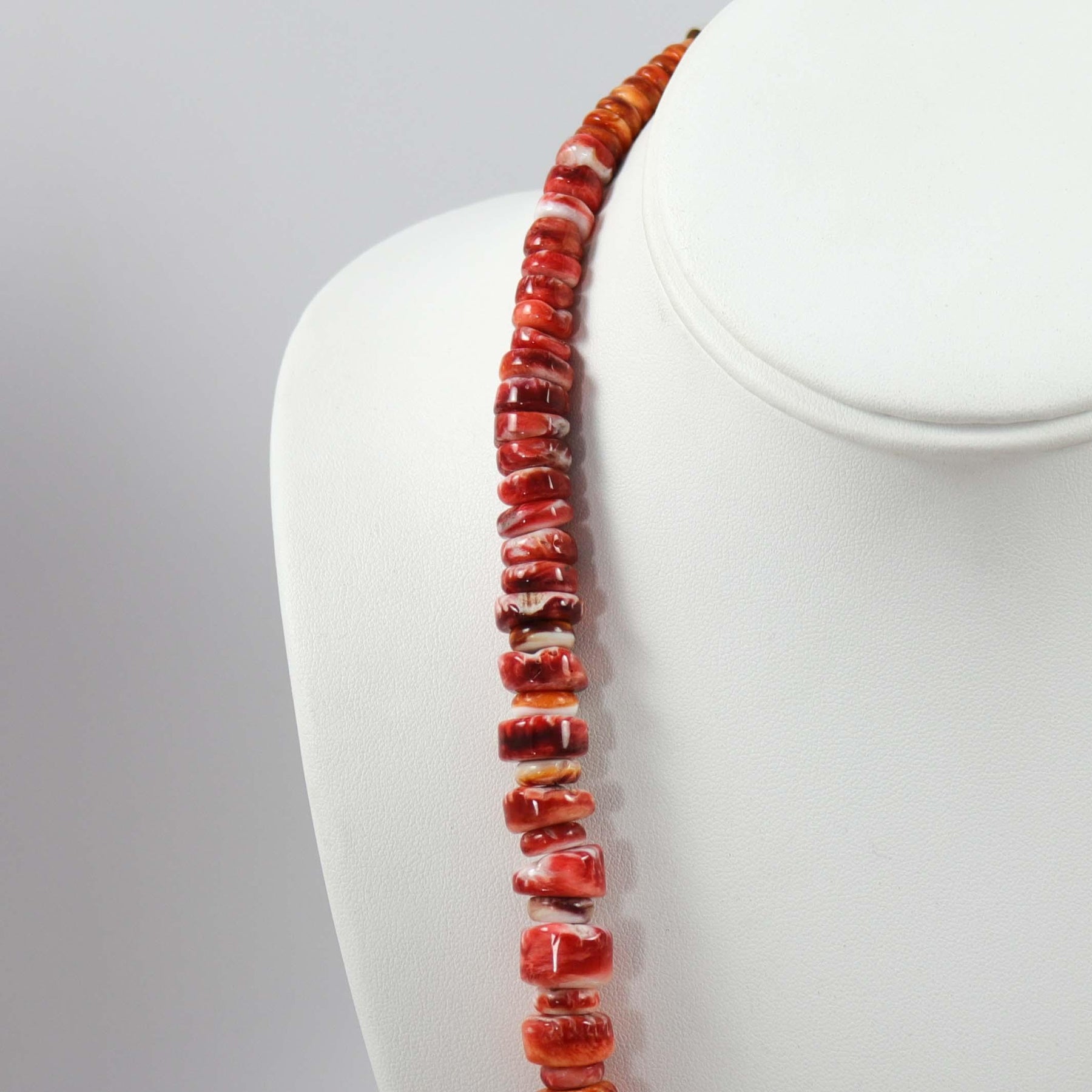 Collier de perles à brin unique avec perles de coquille d’huître épineuse roulées à la main.