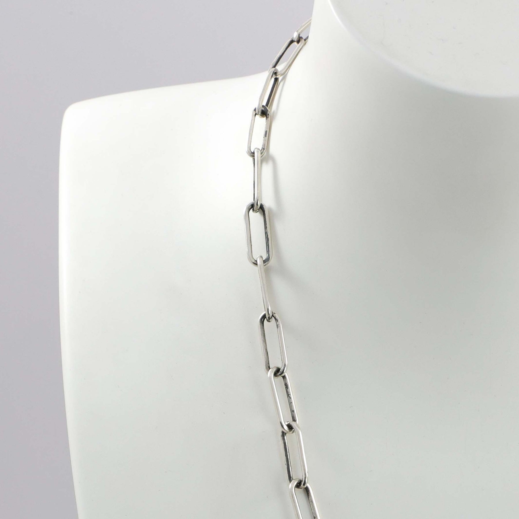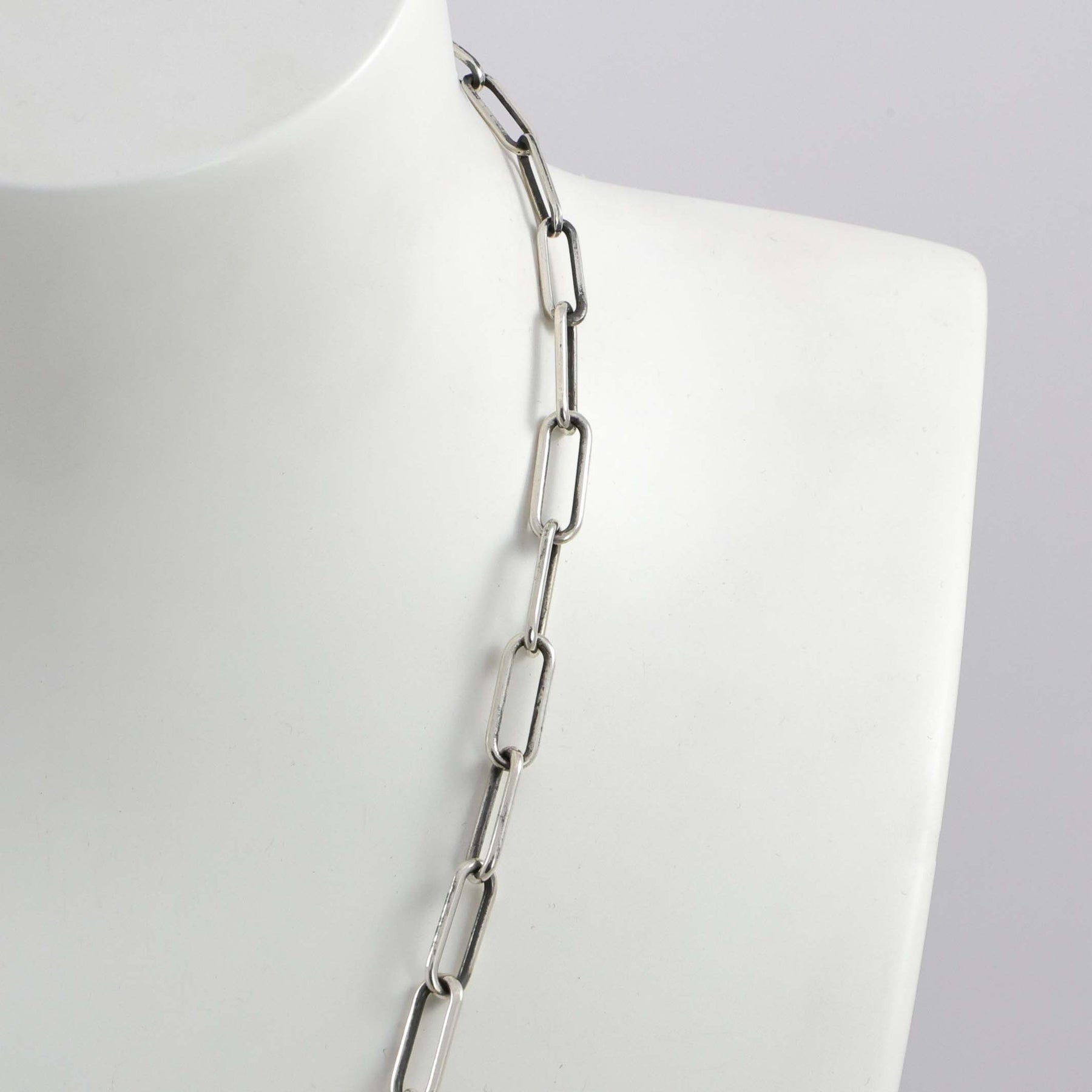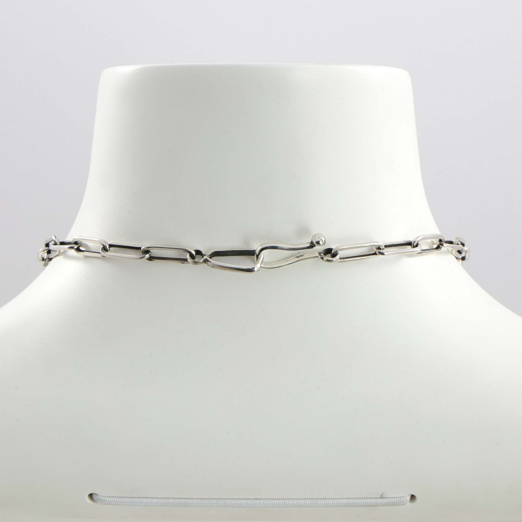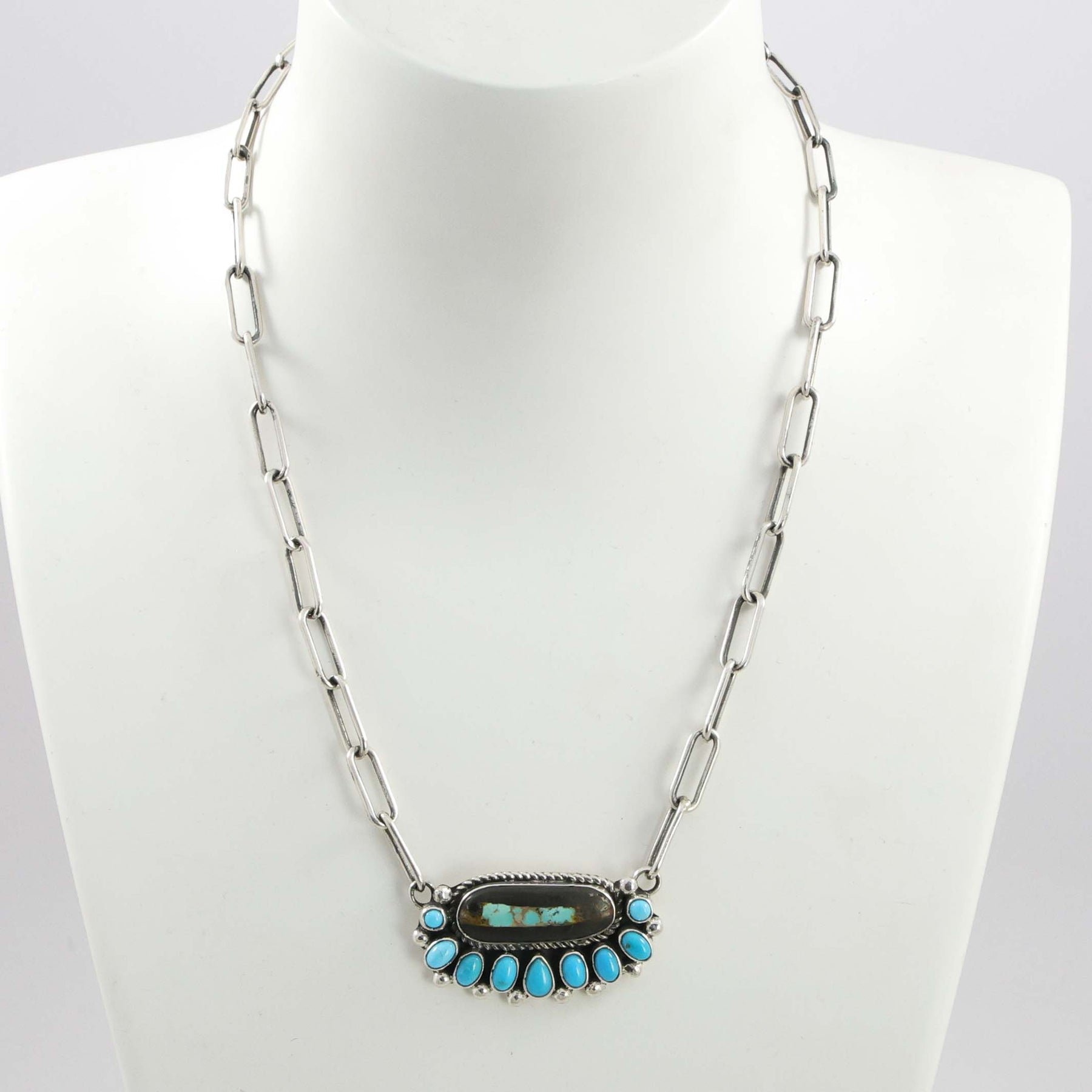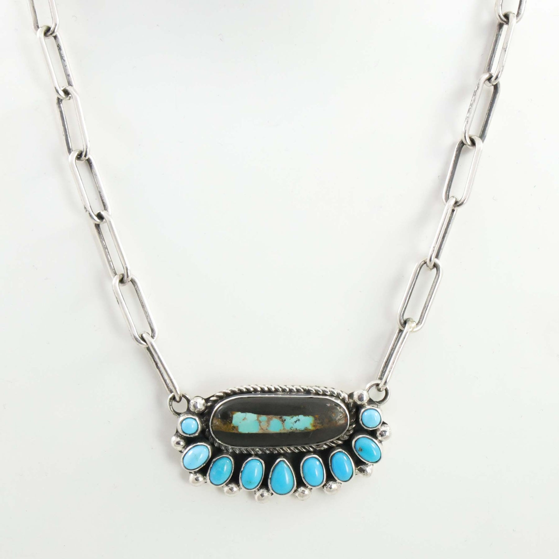 Sterling Silver Link Necklace set with Natural Black Jack Turquoise and Sleeping Beauty Turquoise.