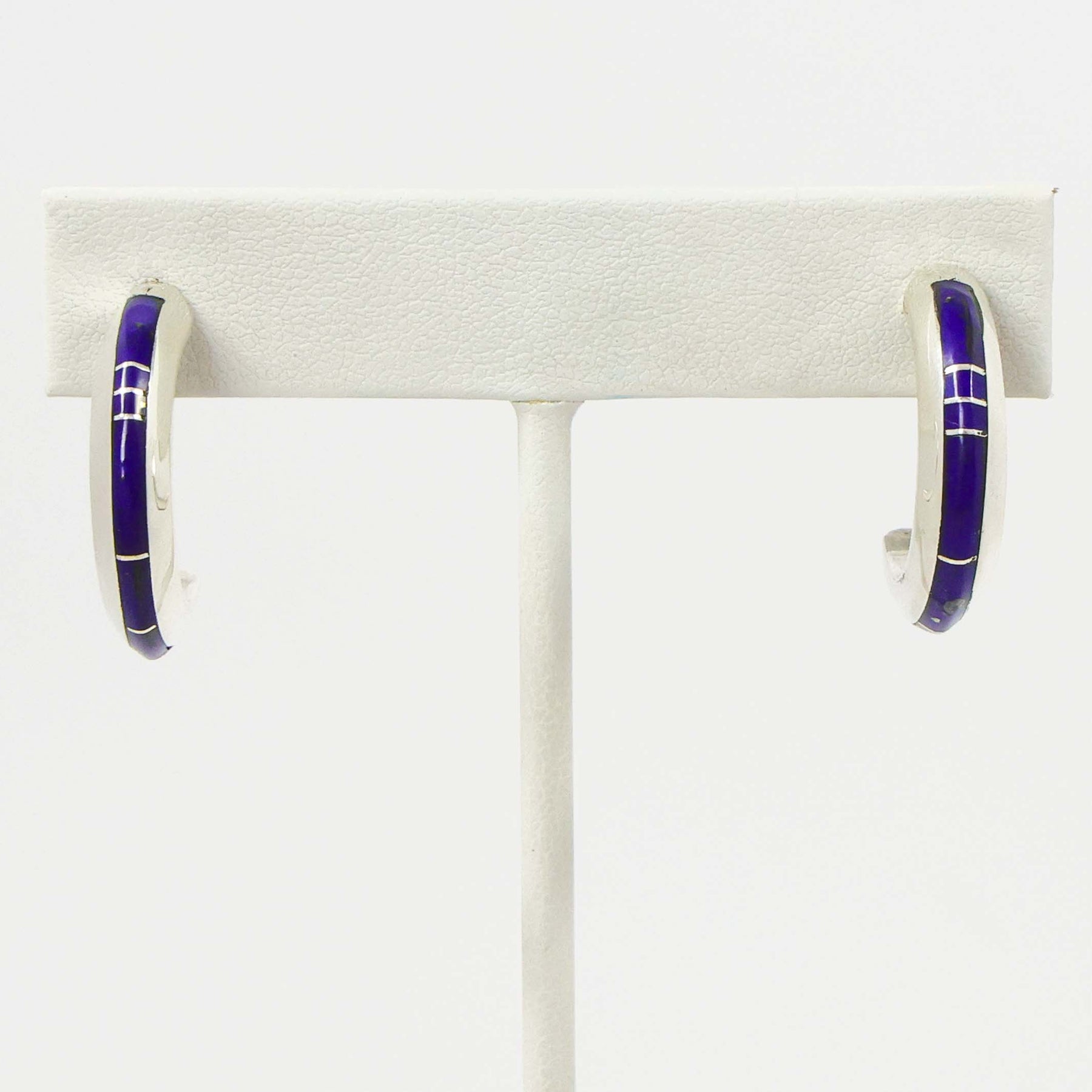 Sterling Silver Post Hoop Earrings with Channel Inlaid Lapis.
