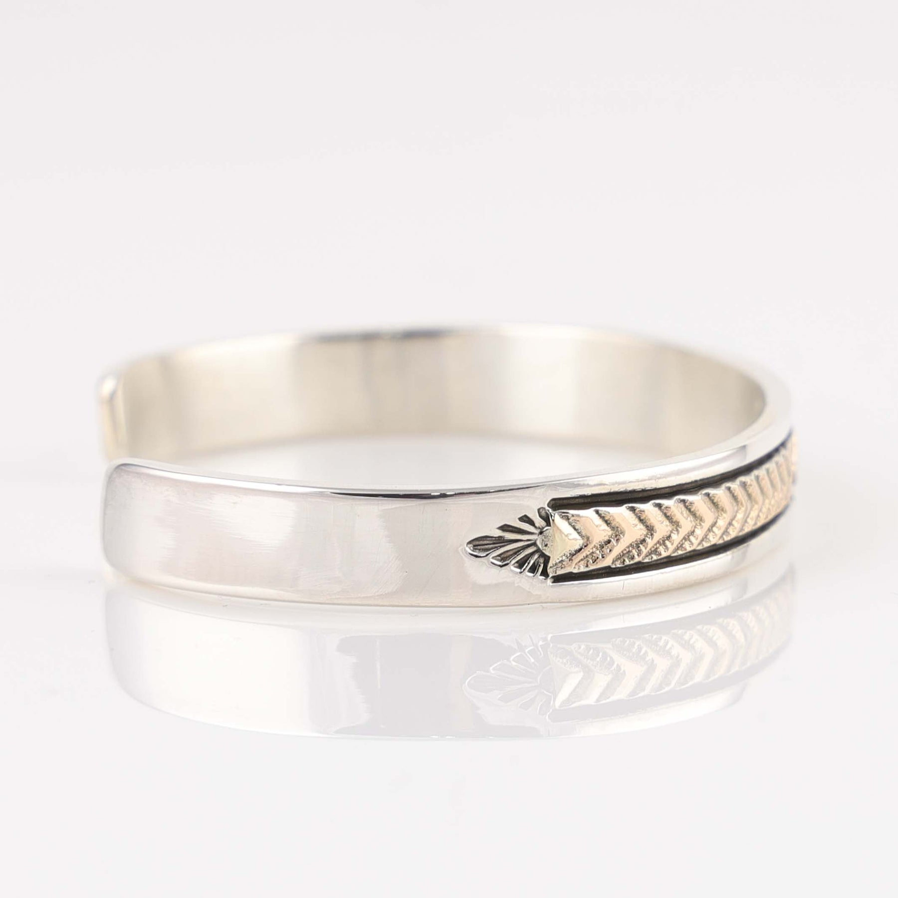 Sterling Silver Cuff and 14k Gold Cuff Bracelet with Hand-Stamped Designs.