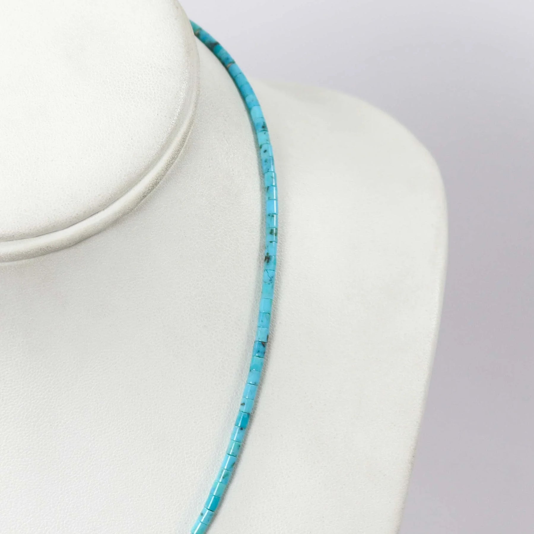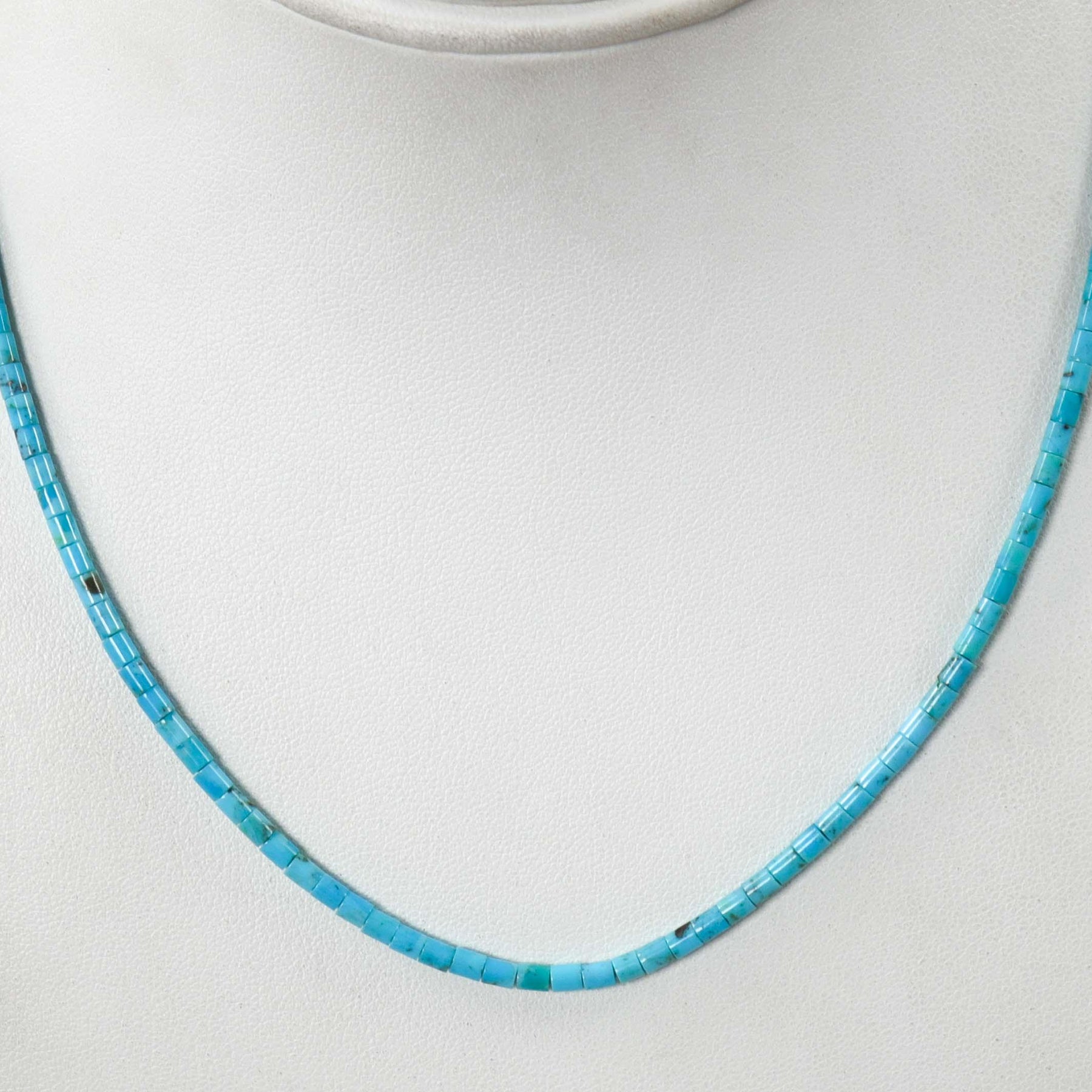 Single Strand Necklace with Fine Hand-Rolled Heishi Beads made from Stabilized Kingman Turquoise.