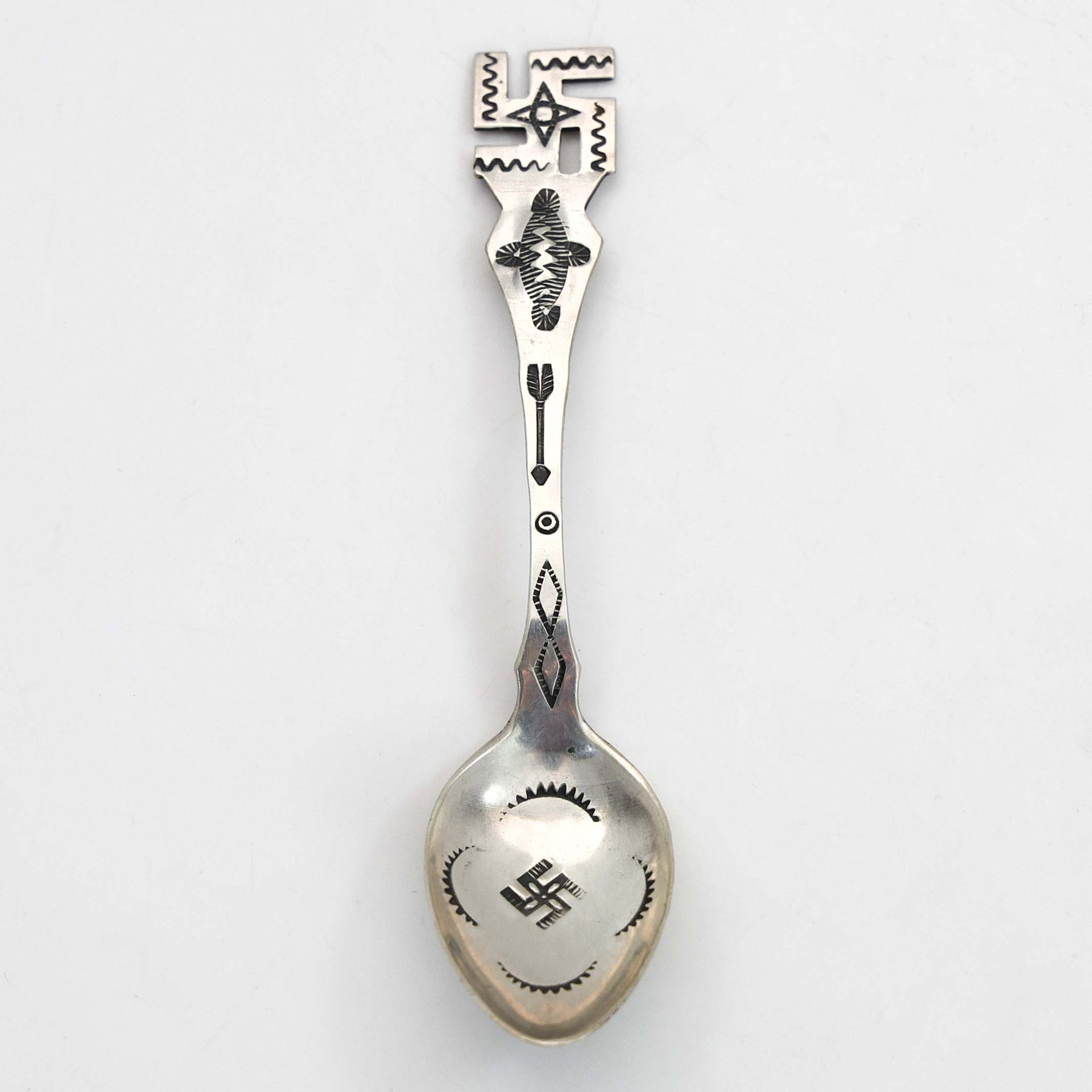 1930s Navajo Fred Harvey Era Sterling Silver Spoon with Hand-Stamped Whirling Log Designs.
