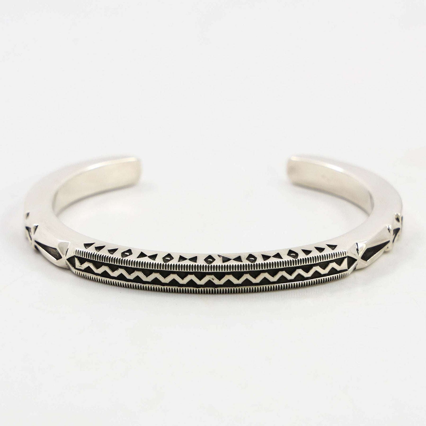 Sterling Silver Cuff Bracelet with Hand-Stamped and Filed Designs.