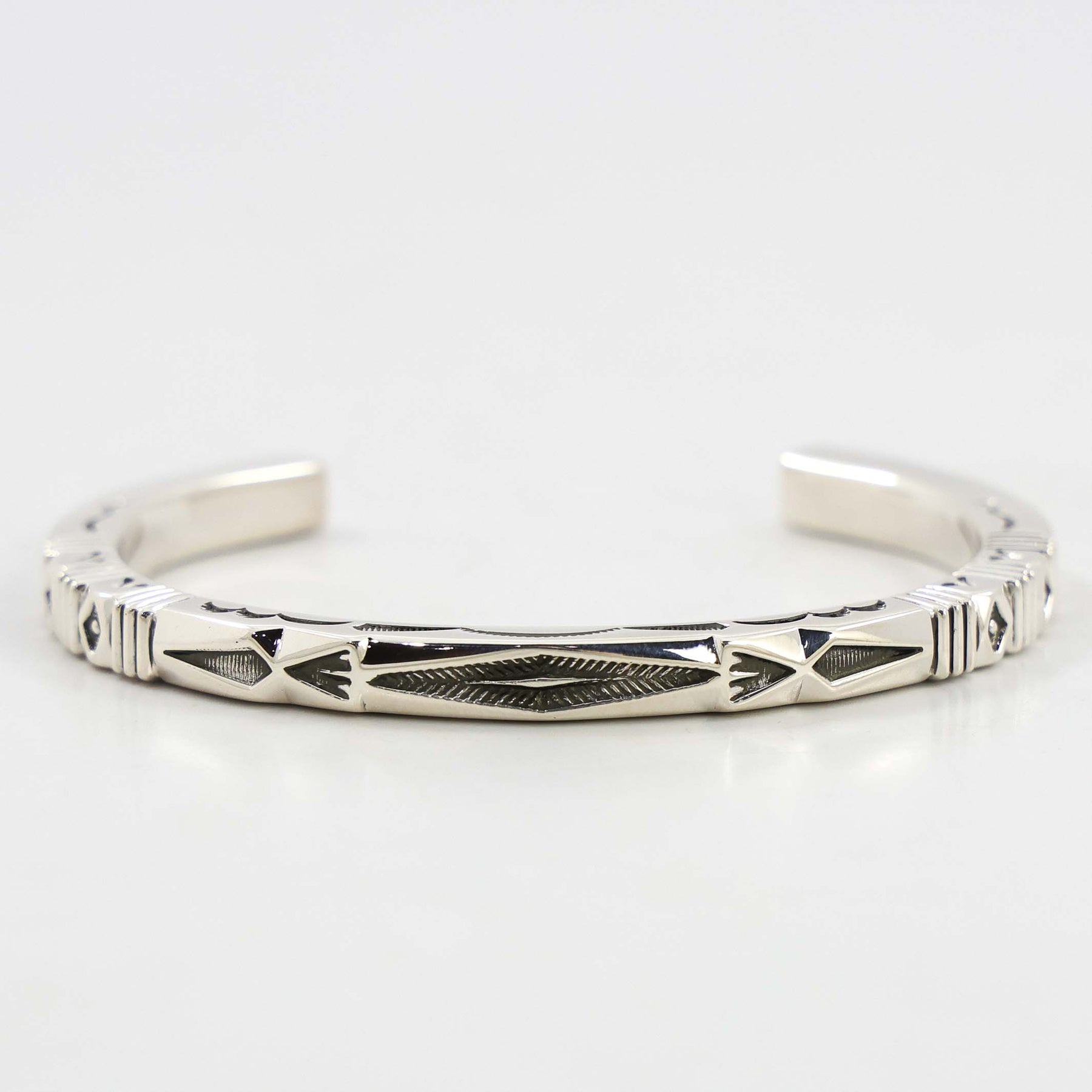 Sterling Silver Cuff Bracelet with Hand-Stamped and Filed Designs.