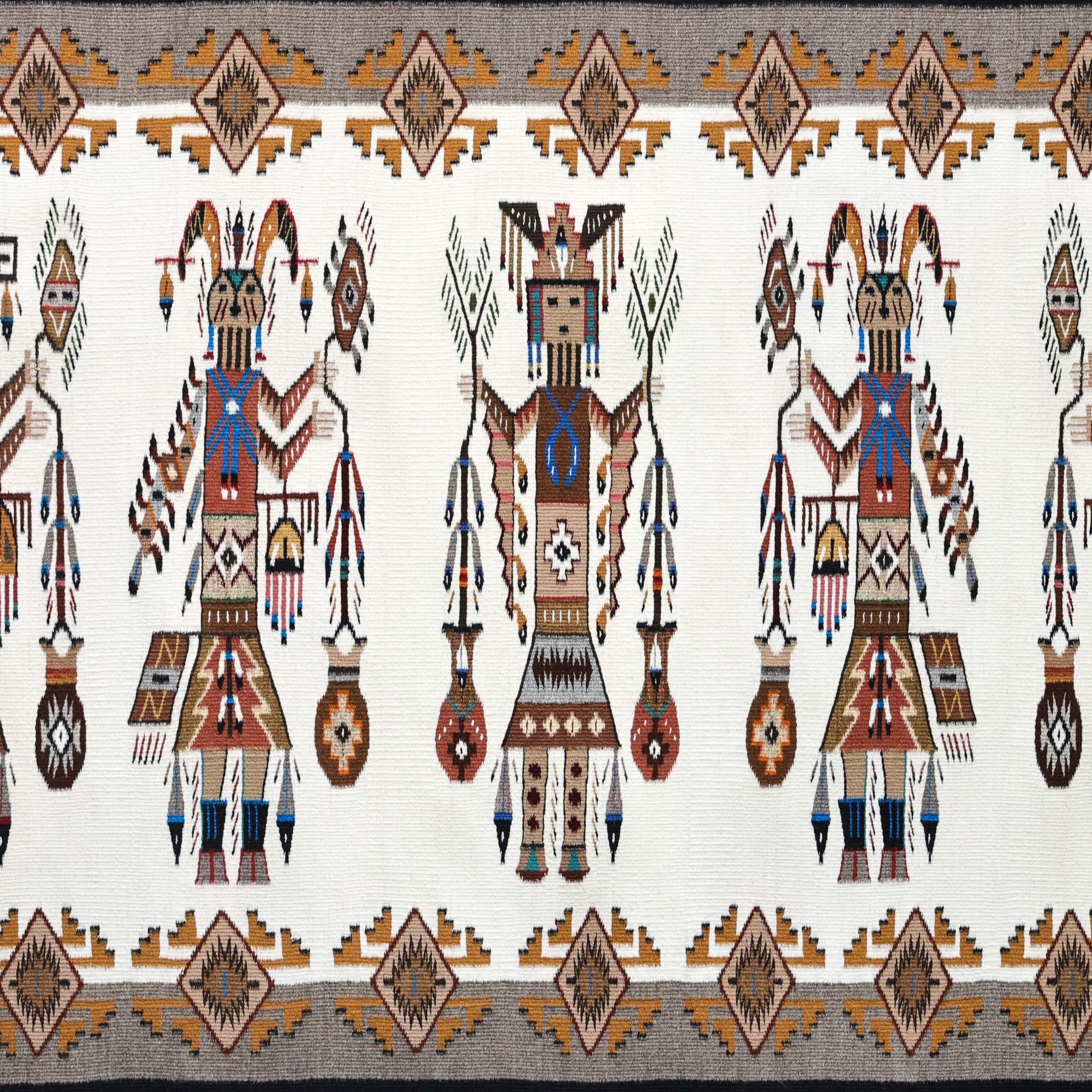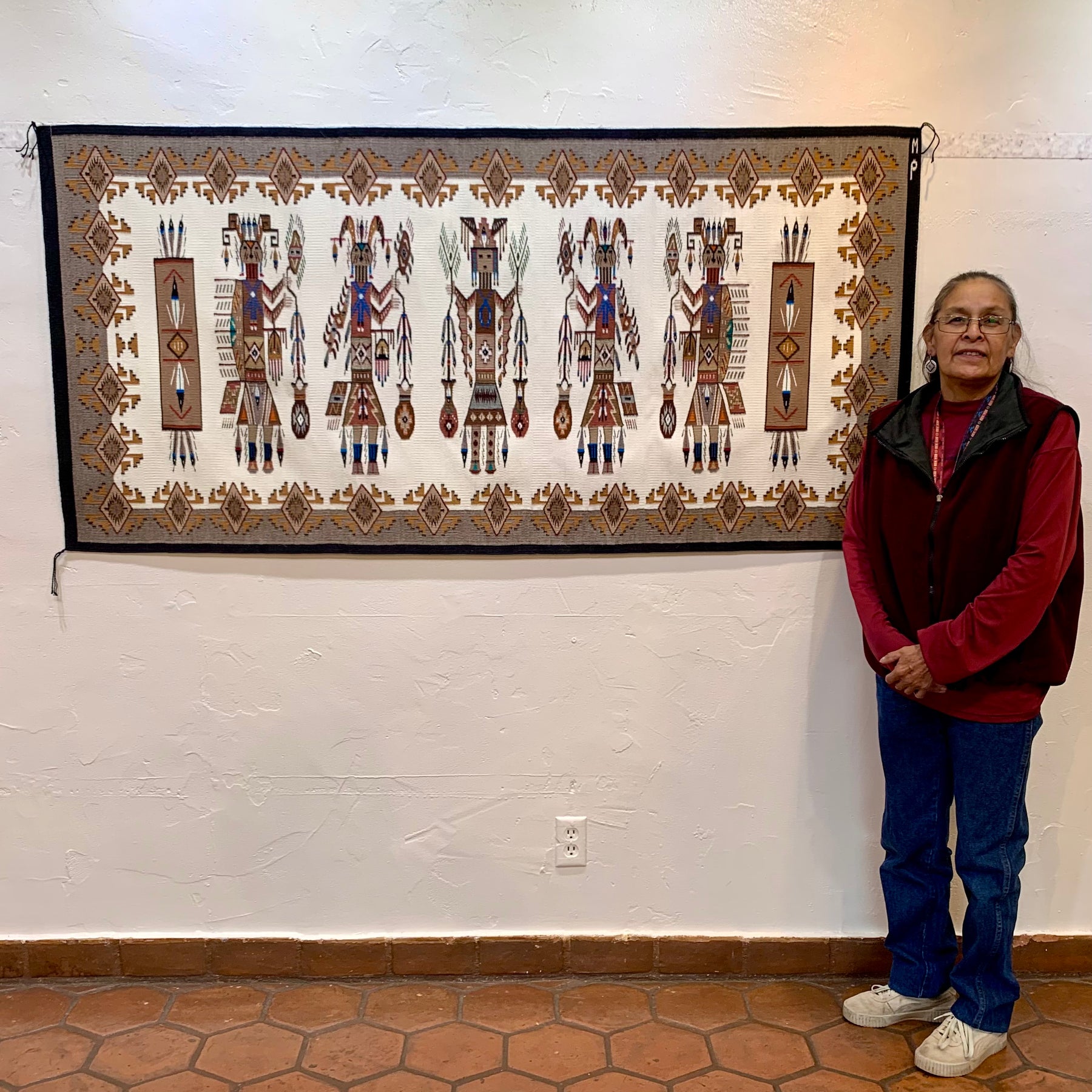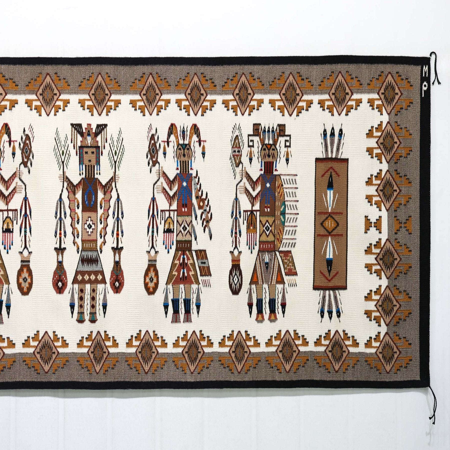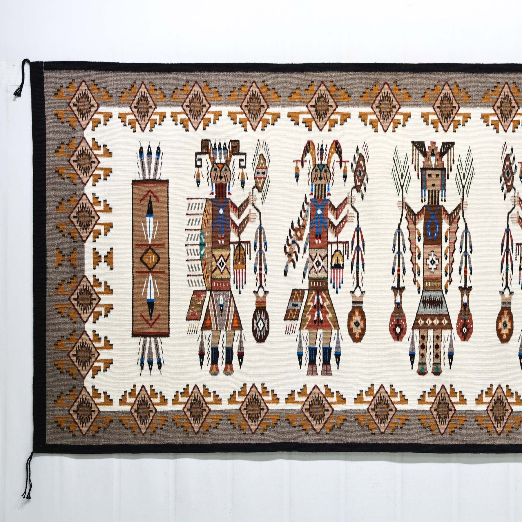 Fine Handwoven Navajo Weaving with Five Intricate Yei Figures (Navajo Healing Spirits) and a Detailed Border.