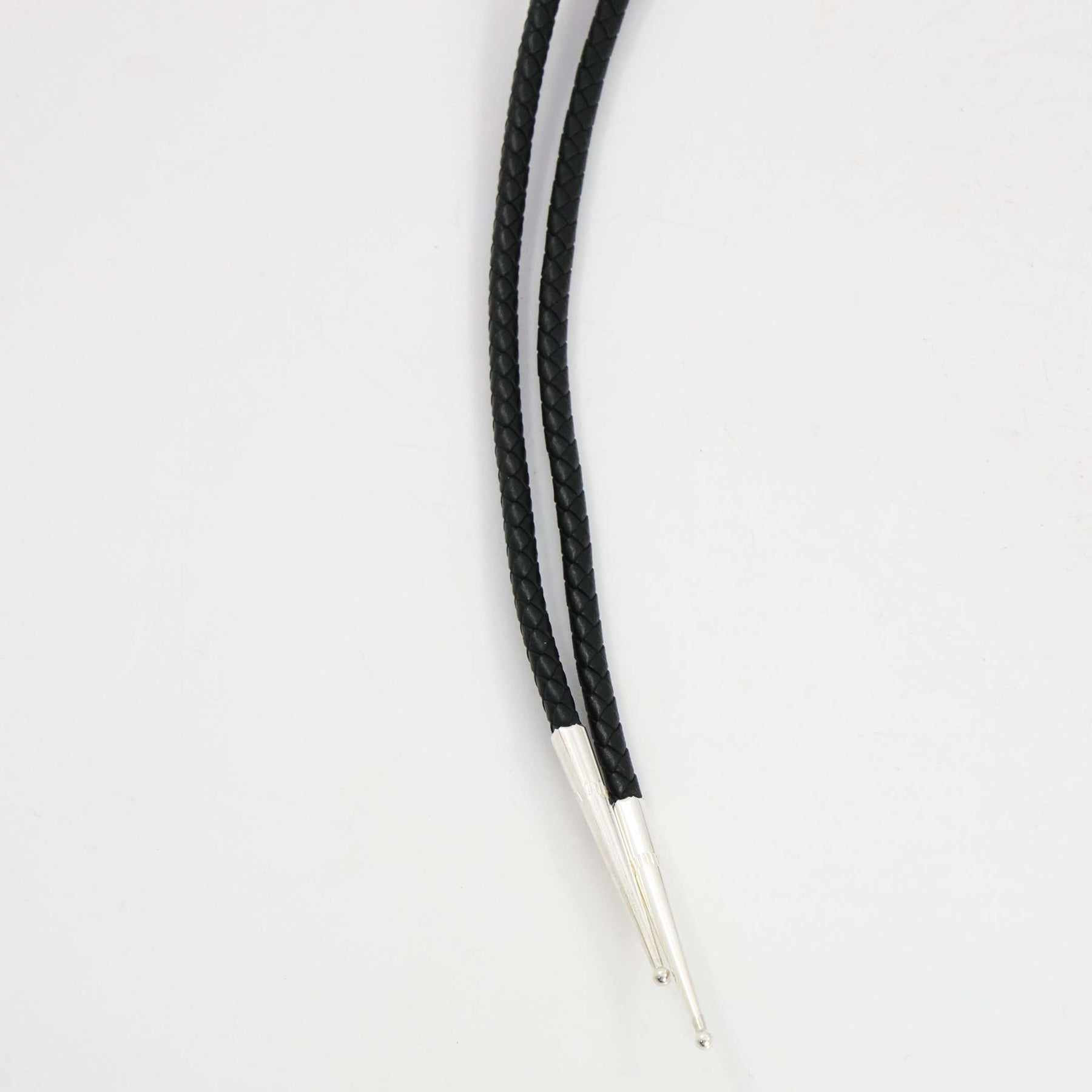 Sterling Silver Bola Tie with Hand-Stamped Designs and set with Kingman Turquoise from Arizona.