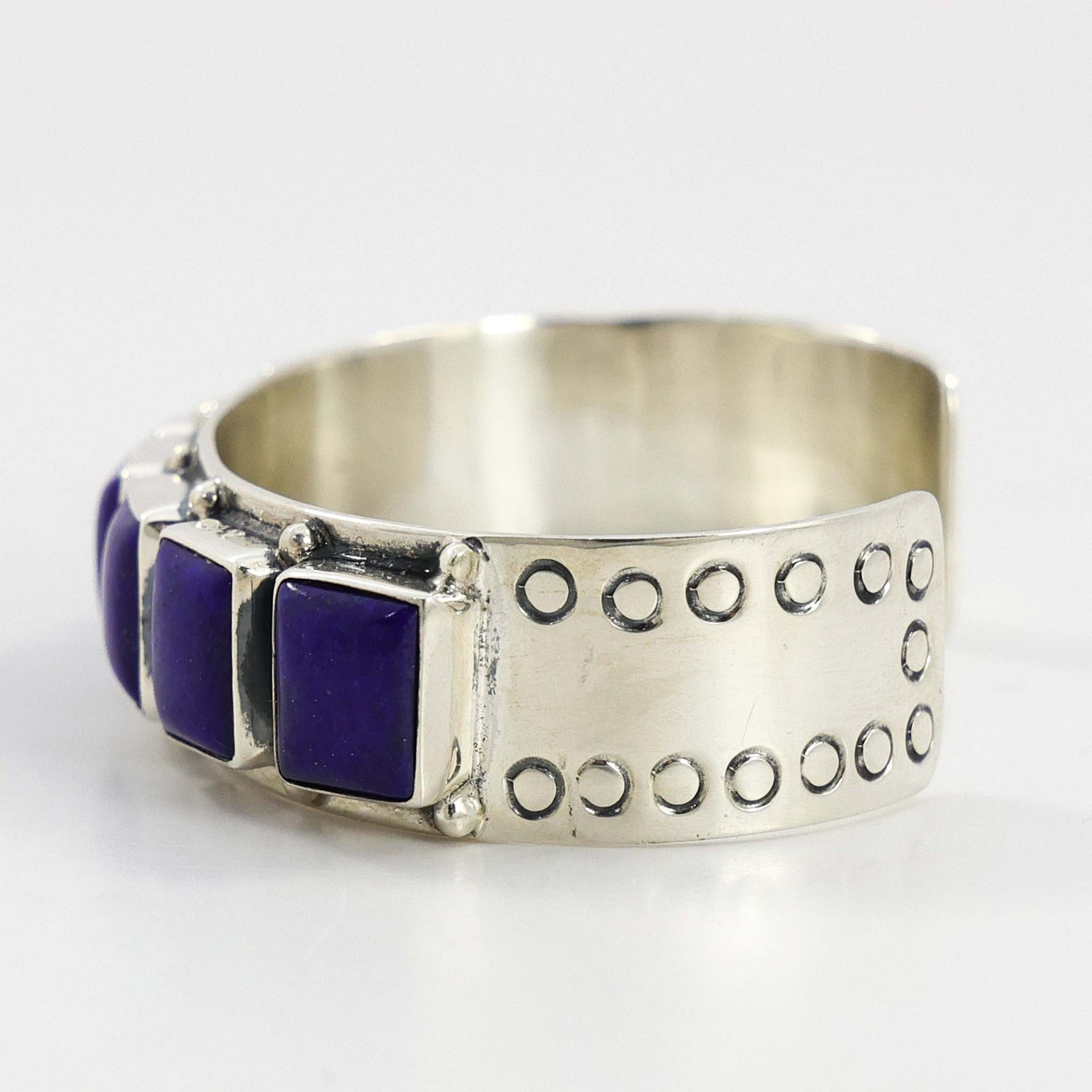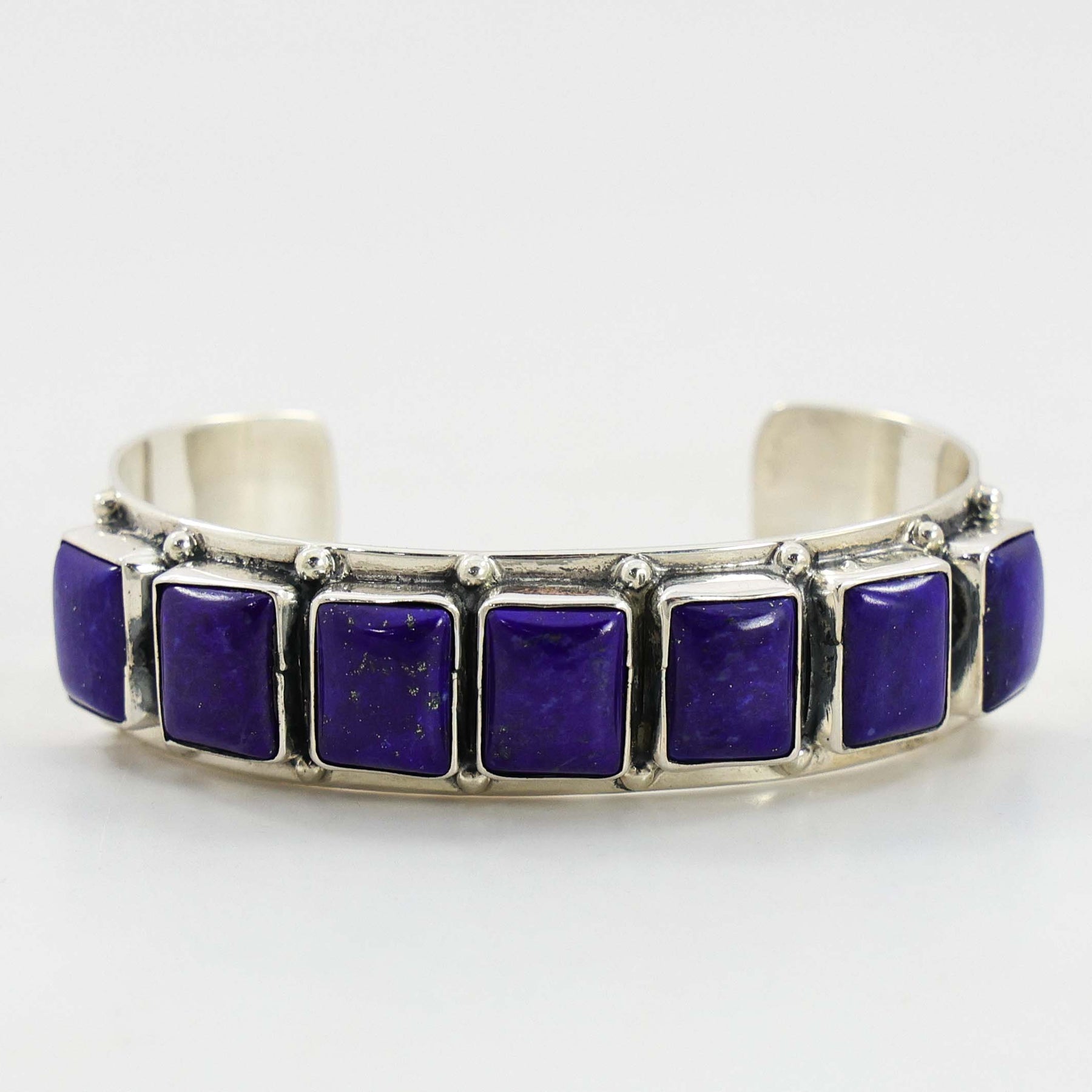Sterling Silver Cuff Bracelet set with Row of Lapis.