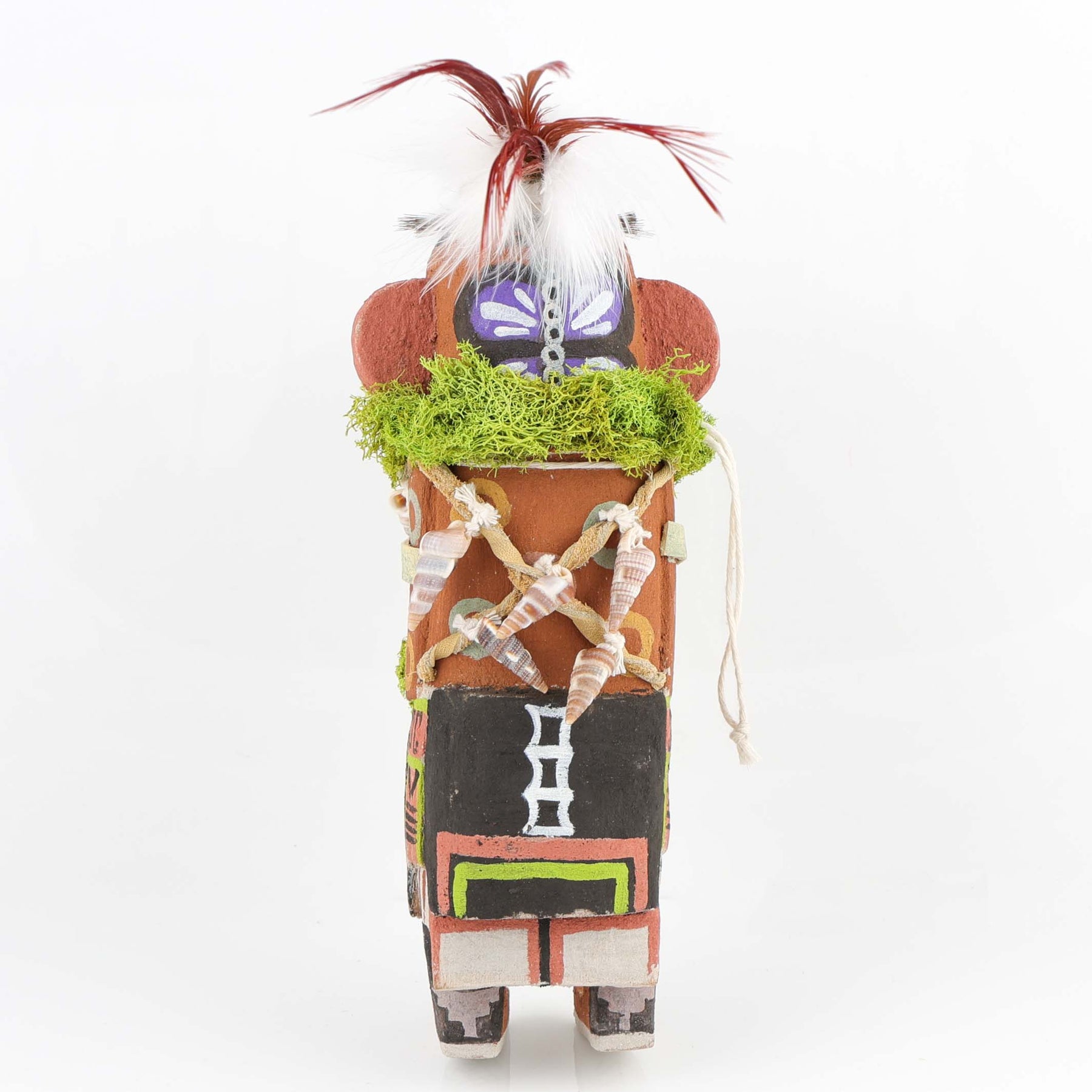 Old-style Kachinas are traditionally made for hanging, and this figure includes a loop on the back for wall display.