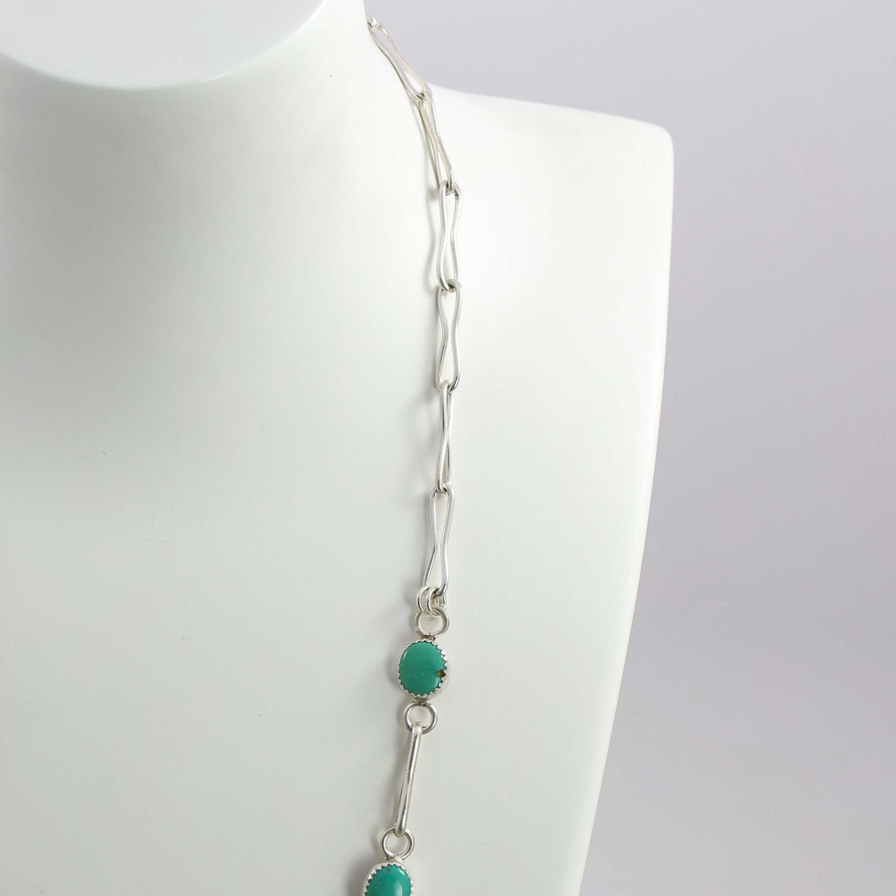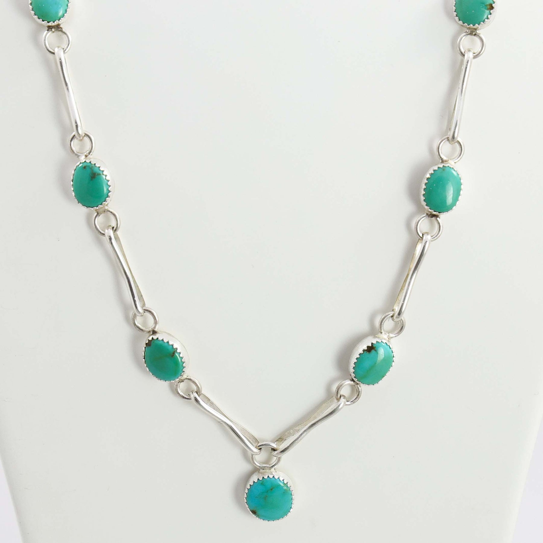 Sterling Silver Link Necklace set with Natural Royston Turquoise from Nevada.
