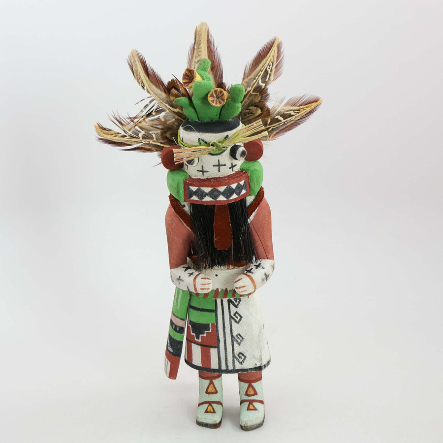 Hand-Carved and Painted Hopi Hi'Lili Kachina Holding Yucca Stalks in Either Hand.