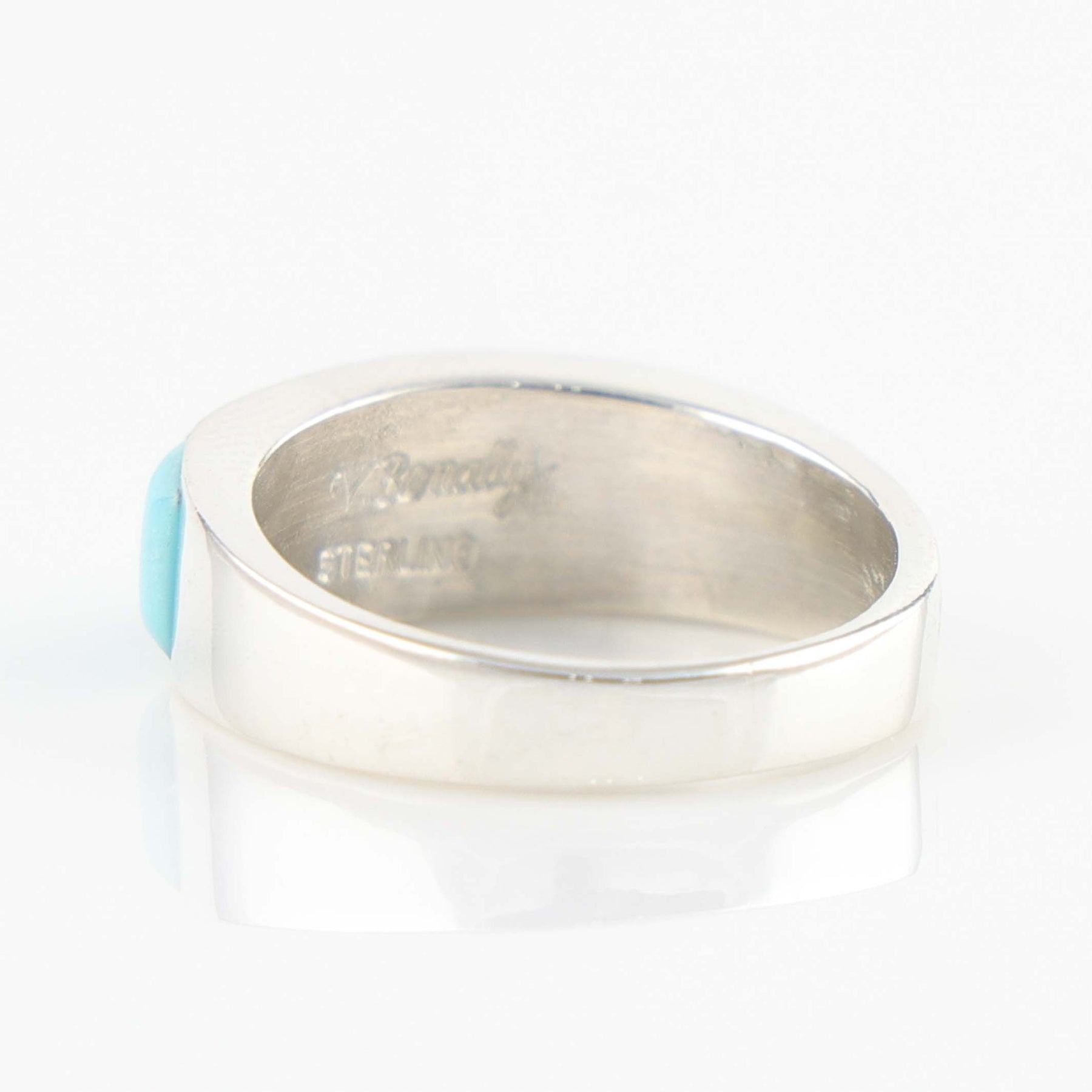 Sterling Silver Ring with Cobble Inlaid Kingman Turquoise and Mother of Pearl Shell.