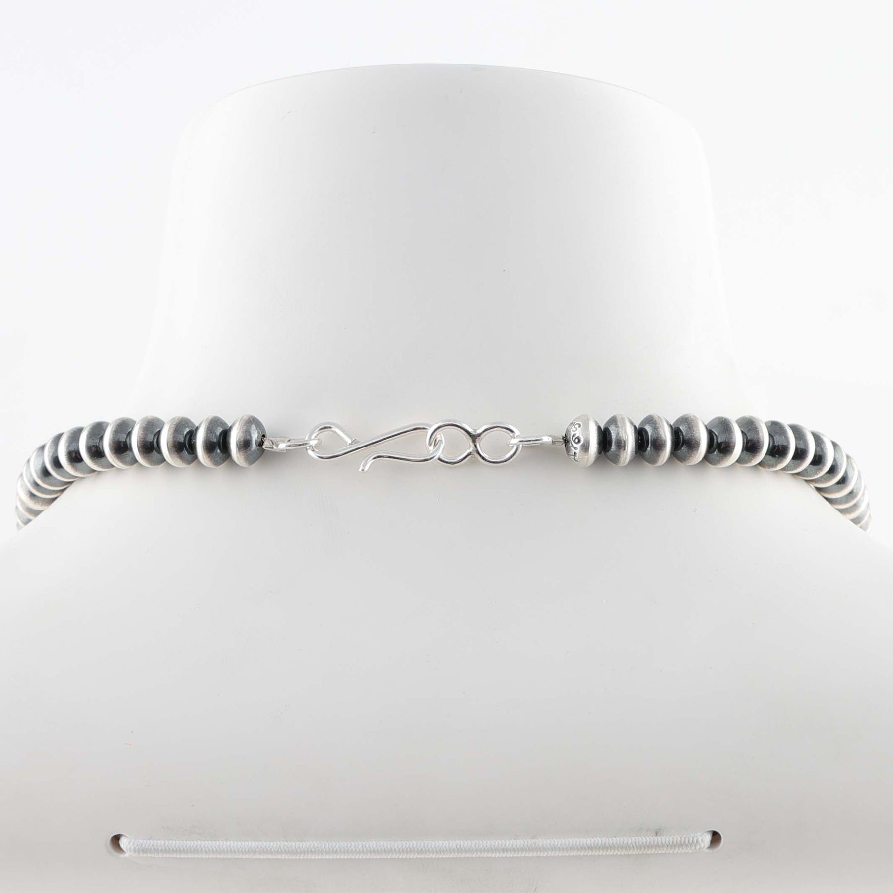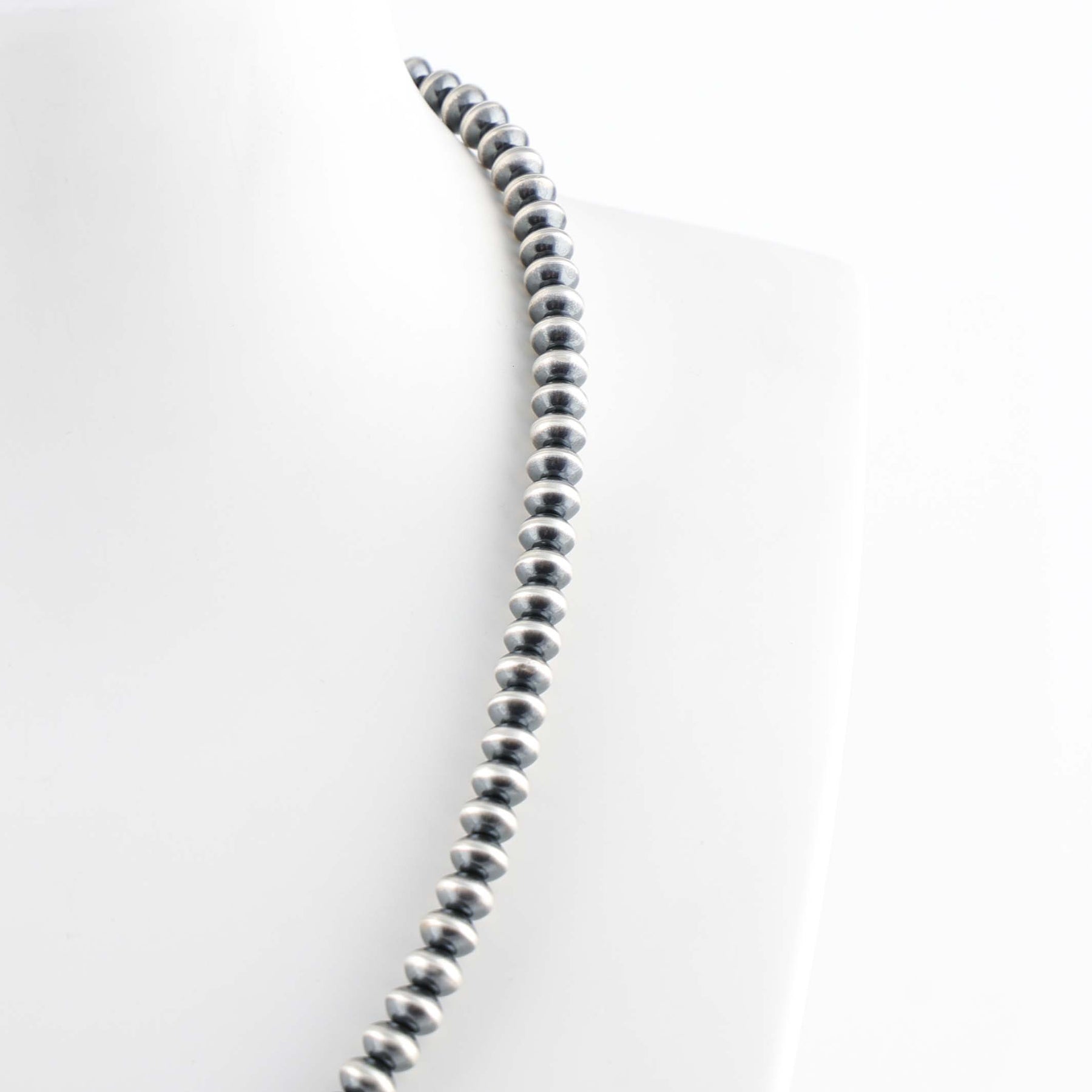 Sterling Silver Navajo Pearl Necklace with Handmade Beads in an Oxidized Finish.