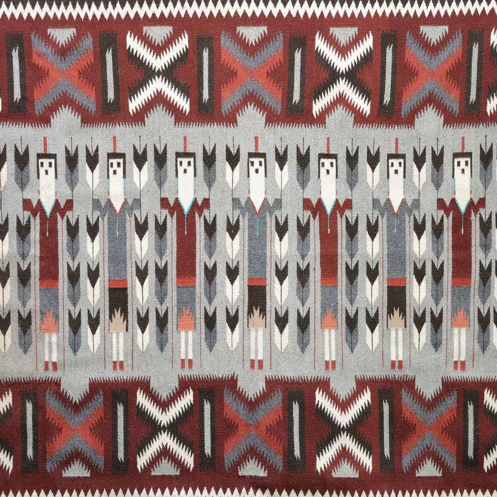 Couverture Revival Tissage avec des dessins picturaux de train, des lignes électriques, des cactus, des arbres et des montagnes.